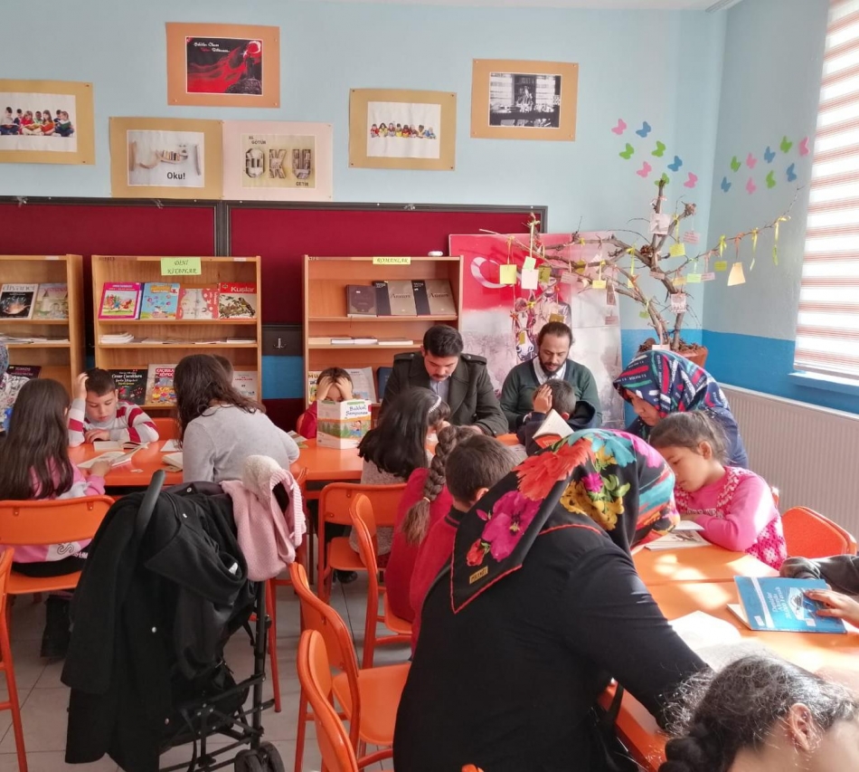 'VELİMLE OKULUMDA OKUYORUM' projesi kapsamında, okulumuz Piri Reis Kütüphanesi'nde düzenli olarak devam eden okuma etkinliğine ilçe kaymakam Mehmet Ali Atak katıldı.