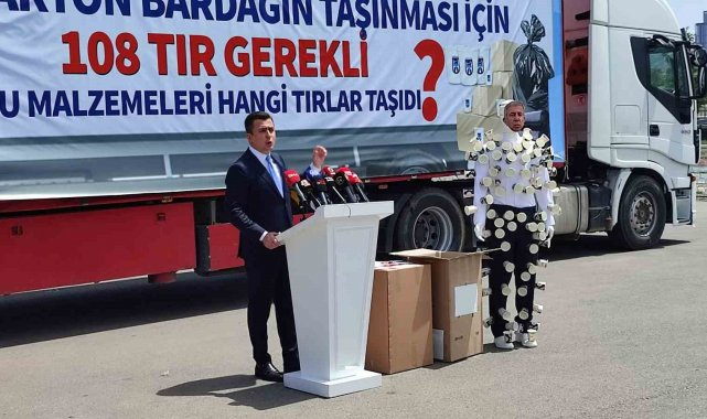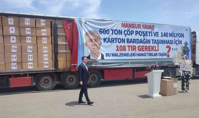 Gökçek, Mansur Yavaş'ın bu malzemelerin 5 tır ile taşındığını söylediğini fakat bu durumun fiziken mümkün olmadığını söyledi. Söz konusu 5 tırın sadece 3 bin malzeme aldığını kanıtladıklarını belirten Gökçek, "Mansur Bey bu malzemelerin 5 tır ile taşındığını söylemişti. Bunun fiziken mümkün olmayacağını ispat etmek istiyorum. Toplamda 140 milyon tane bardak 47 bin adet koliye eşittir. Bu 47 bin tane koliyi 5 tırla taşıdıklarını söylüyorlar. Arkada görmüş olduğunuz tır 4 kapaktan oluşmaktadır. Her bir kapağı 150 adet koli almaktadır. Yani toplamda 600 adet koliyi alabilecek kapasitededir. Ankara Büyükşehir Belediyesi 140 milyon tane bardağı 5 tıra sığdırdığını söylüyor. Fiziken bu imkansızdır. Eğer 108 tır malzemeyi 5 tırla taşıdıklarını söylüyorlar ise buradaki soygun çok açık ve net bir şekilde ortadadır. Çünkü 5 tırın içerisine girebilecek sayı 3 bin adettir. Buradaki 47 bin sayısı nerededir, 3 bin sayısı nerededir? Bunu buraya sığdırabilmeniz mümkün değildir" değerlendirmelerinde bulundu.