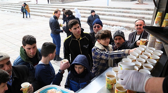 Aksaray Belediyesi tarafından Ulu Cami önünde vatandaşlara çorba ve lokma ikram edildi.