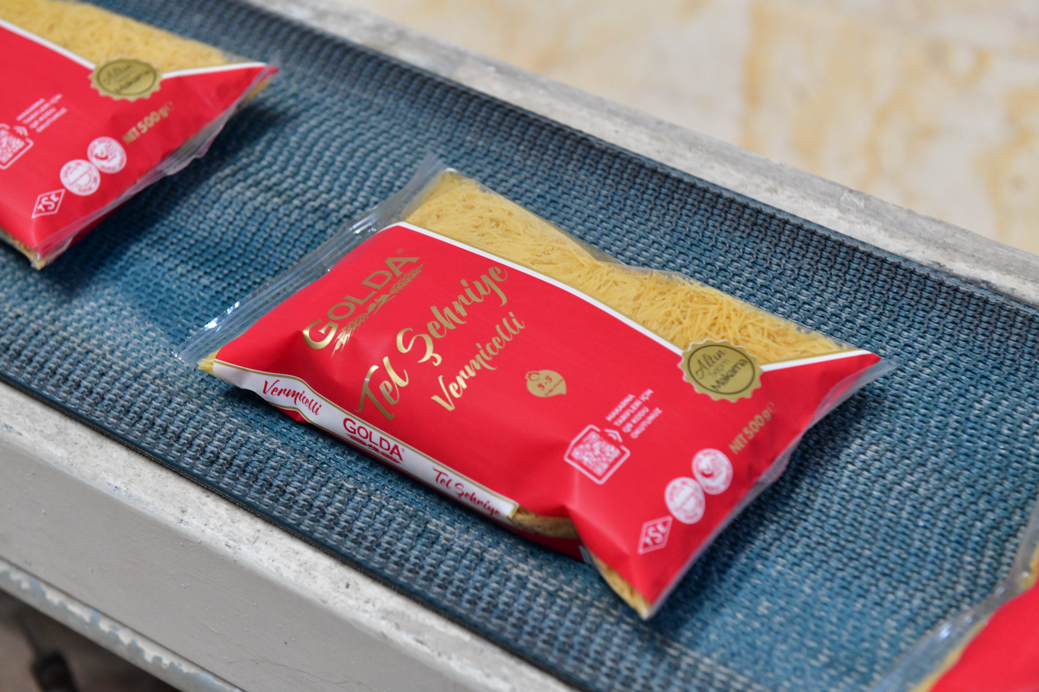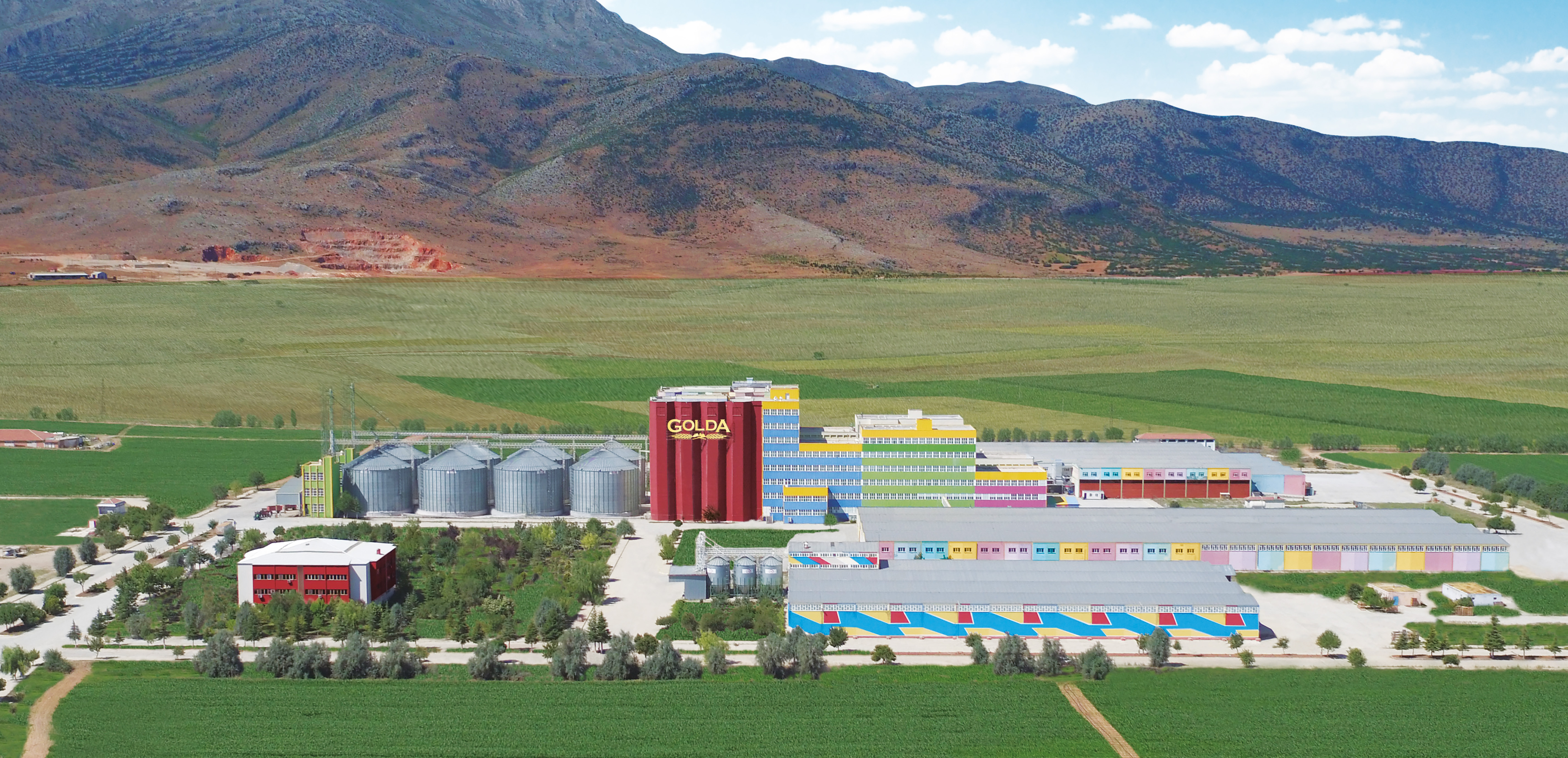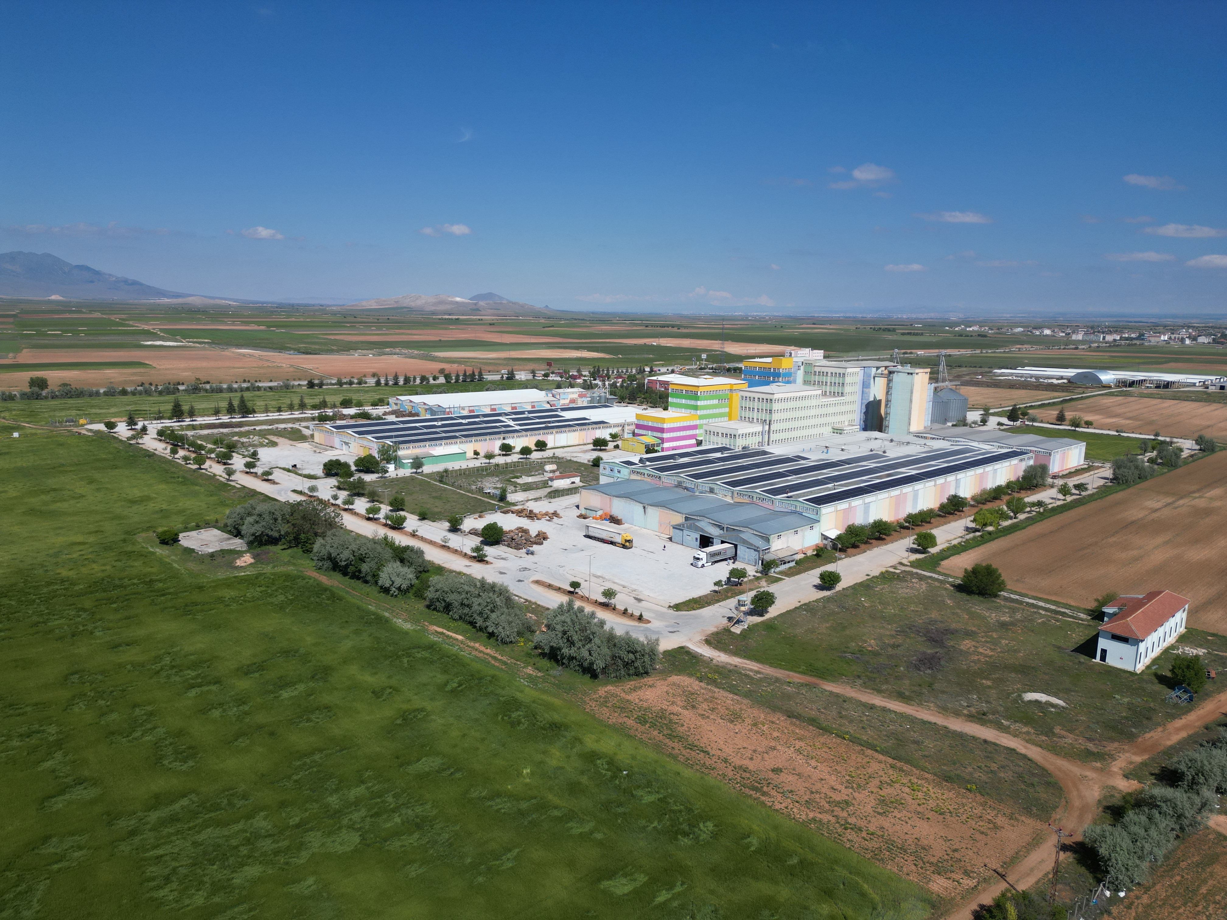 Golda Gıda'nın Kazımkarabekir'deki entegre üretim kompleksi, ölçeğiyle başlı başına dikkat çekiyor. 1.078.000 metrekare açık alan üzerine kurulu 76.082 metrekare kapalı üretim tesisinde makarna, irmik, un, bakliyat ve atıştırmalıklar olmak üzere beş bağımsız üretim hattı eş zamanlı olarak çalışmaktadır. Bu tesislerde yılda 120 bin ton buğday ve bakliyat işlenmekte; her üretim hattı tam entegre lojistik ve kalite altyapısıyla desteklemektedir.