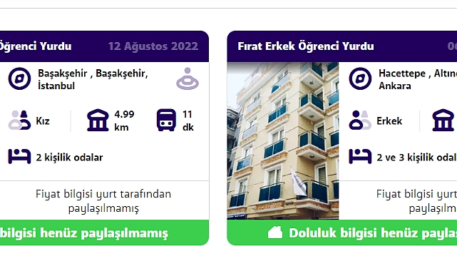 detaylarının her birine bulabilirsiniz. Tüm bu detaylar içerisinde sizler için en önemli olan detayları filtreleyerek istediğiniz kalitede ve istediğiniz konforda uzun yıllar konaklayabileceğiniz öğrenci yurdunuzu kendiniz çok daha hızlı bir şekilde seçebilirsiniz.