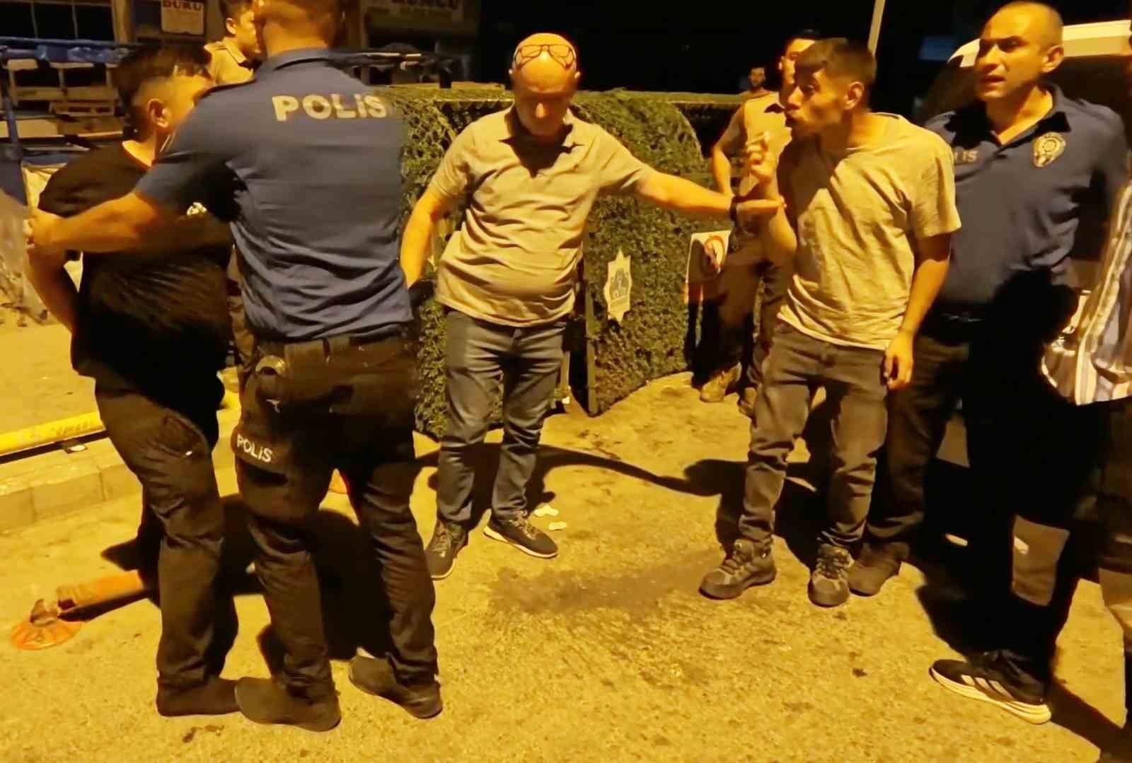Aksaray'da tartıştığı arkadaşını bıçaklayarak yaralayan şahıs, bekçilerin kovalamacası sonucu kısa sürede yakalandı. Bekçilere "Denetimli insanım, beni yakma" diyen şahıs, olay yerine gelen akrabasına da kafa atarak darp etti. Olay, Eski Sanayi Caddesi üzerinde meydana geldi. Edinilen bilgiye göre, Mustafa Y. (25) ile Hüseyin Ş. bilinmeyen bir nedenle tartıştı. Tartışma kısa sürede büyürken, iddiaya göre Hüseyin Ş. yanındaki bıçakla Mustafa Y.'yi yaraladı. Bıçaklamanın ardından kavga devam ederken, sesleri duyan mahalle sakinleri durumu 112 Acil Çağrı Merkezine bildirdi. İhbar üzenine olay yerine polis ve sağlık ekipleri sevk edildi. Bekçilerin geldiğini görünce elindeki bıçakla kaçan Hüseyin Ş., yaşanan kovalamaca sonucu kısa sürede yakalandı. Yaşanan kovalamaca ve zanlının yakalanma anı ise kameralara yansıdı. Gözaltına alınmak istenen şahıs, bekçilere zorluk çıkarıp denetimli serbestlikten yararlandığını belirterek, "Denetimli insanım beni yakma" dedi. Hüseyin Ş., olay yerine gelerek kendisini sakinleştirmeye çalışan akrabasına da kafa atarak darp etti. Bekçi ve polislere bağırıp çağırarak direnen şahıs, güçlükle gözaltına alındı. Yaralanan Mustafa Y. ise, olay yerine gelen ambulansta ilk müdahalesi yapılarak Aksaray Eğitim ve Araştırma Hastanesine kaldırıldı. Burada tedavi altına alınan yaralının sağlık durumunun iyi olduğu öğrenilirken, olayla ilgili Aksaray Cumhuriyet Başsavcılığınca tahkikat başlatıldı.