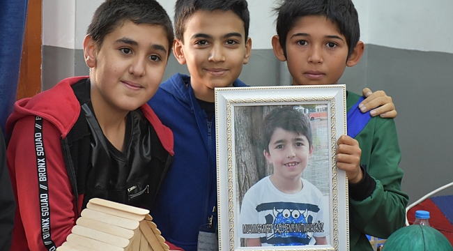 Geçtiğimiz günlerde kalp krizi sebebiyle hayatını kaybeden İmaret Ortaokulu 7-B sınıfı öğrencisi Muammer Mert Saçlı'nın arkadaşları, onu unutmadı. Bilim fuarında arkadaşları geri dönüşüm malzemelerinden oluşturdukları proje çalışmaları arasında Muammer'in ortaya koyduğu projeye de yer verdiler.