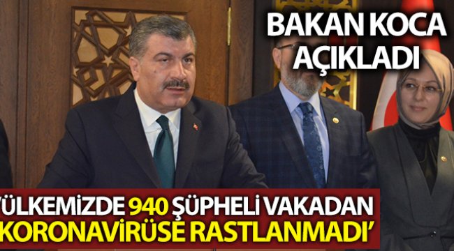 "Bugüne kadar ülkemizde koronavirüs vakasına rastlanmadı. 940 şüpheli vakadan pozitif vaka çıkmadı."