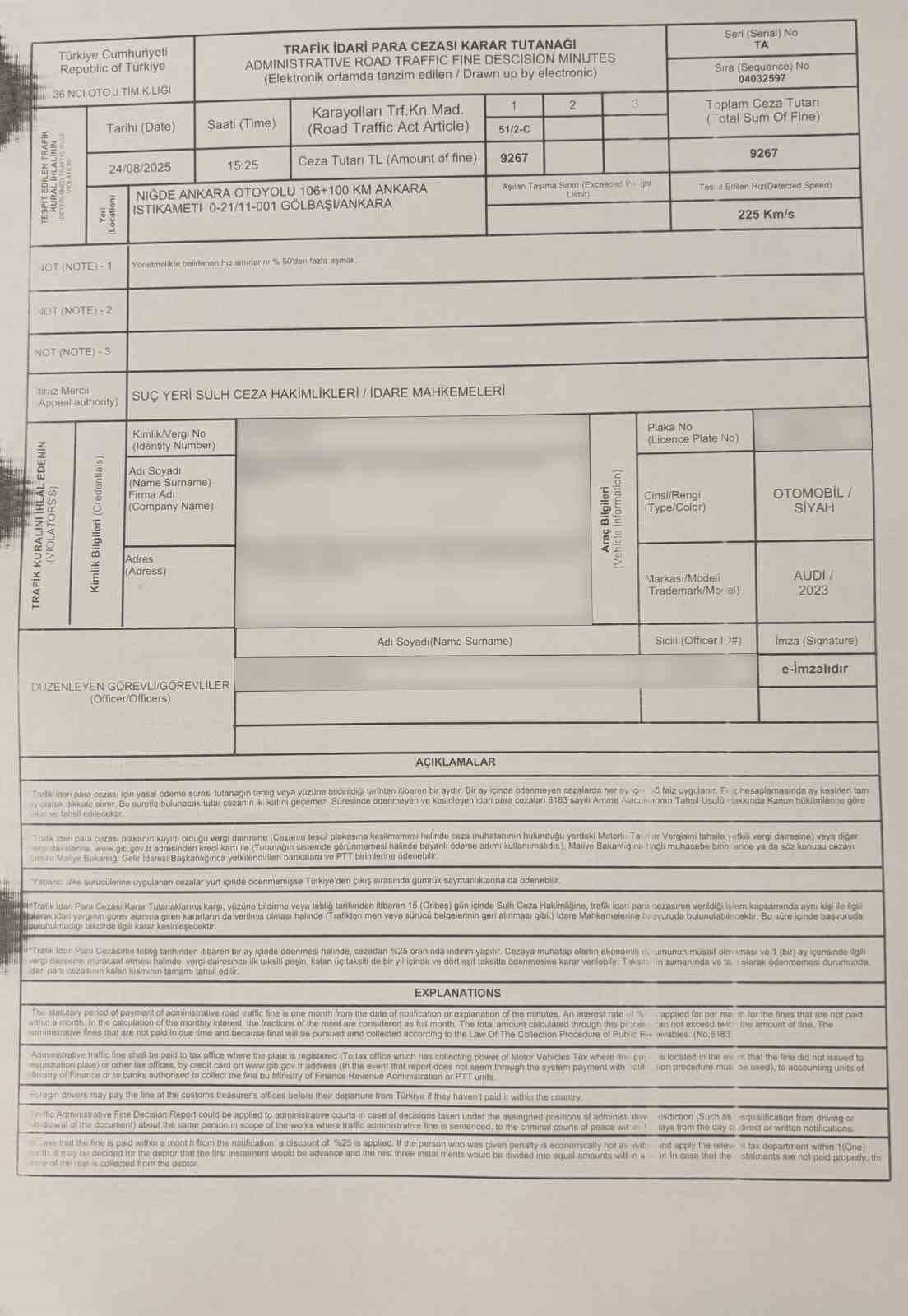 Ulaştırma ve Altyapı Abdulkadir Uraloğlu'na, Ankara-Niğde Otoyolu'nda radar cezası kesildi.