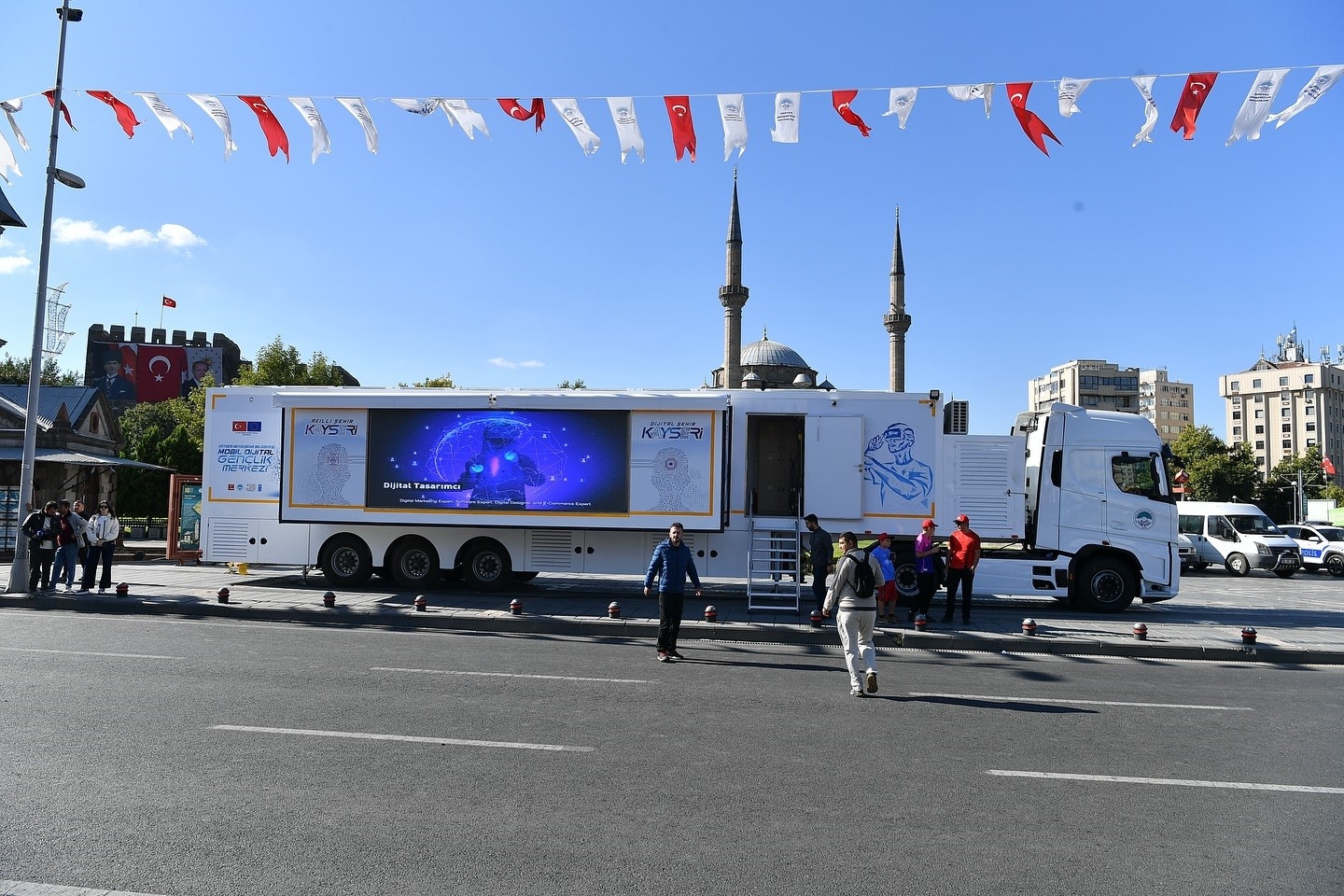 Kayseri Büyükşehir Belediye Başkanı Dr. Memduh Büyükkılıç, Avrupa Birliği hibesiyle hayata geçirilen ve gençlere dijital çağın kapılarını aralayacak olan Kayseri Büyükşehir Belediyesi Mobil Dijital Gençlik Merkezi'ni tanıttı.