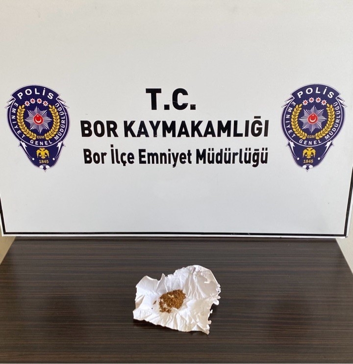 Niğde'nin Bor ilçesinde uyuşturucu ile mücadele kapsamında düzenlenen operasyonda 4 kişi gözaltına alındı, şüphelilerden biri tutuklanarak cezaevine gönderildi. Bor İlçe Emniyet Müdürlüğü Suç Önleme ve Soruşturma Büro Amirliği ekiplerince yürütülen çalışmalar neticesinde, uyuşturucu veya uyarıcı madde imal ve ticareti yapmak, kullanmak için satın almak veya bulundurmak suçlarından L.C.G., A.E., A.E. ve M.H.Y. isimli 4 şüpheli yakalandı. Şüphelilerin ikamet, araç ve üst aramalarında 50 gram tütün, Y 138,89 gram uyuşturucu madde, 6 adet sentetik ecza, 1 adet uyuşturucu kullanım aparatı, 14 adet 9x19 mm fişek, 2 adet uzun namlulu tüfek fişeği, 1 adet 45 kalibre fişek ele geçirildi. Şüpheliler hakkında adli işlem başlatıldı. Gözaltına alınan M.H.Y. isimli şahıs, çıkarıldığı mahkemece tutuklanarak ceza infaz kurumuna teslim edildi.