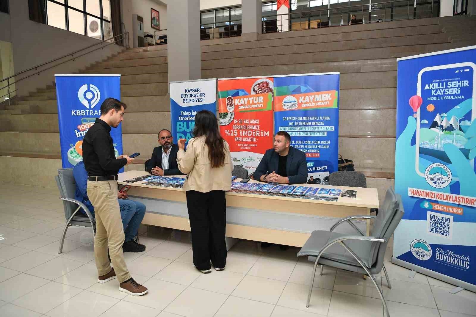 Kayseri Büyükşehir Belediyesi tarafından Erciyes Üniversitesi (ERÜ) Veteriner Fakültesi'ne yeni kayıt yaptıran öğrencilerin oryantasyon eğitimleri kapsamında zenginlikler şehri Kayseri'nin ve belediyenin öğrencilere yönelik hizmetlerinin tanıtımı için seminer düzenlendi. Üniversiteler şehri ve öğrenci dostu şehir Kayseri'de gençlere ve öğrencilere yönelik hizmetleri ile gönüllere dokunan Başkan Dr. Memduh Büyükkılıç yönetimdeki Kayseri Büyükşehir Belediyesi, üniversitelere yeni kayıt yaptıran öğrencilerin kenti ve yerel yönetim hizmetlerini yakından tanıması için çalışmalarını sürdürüyor. 2025-2026 Eğitim-Öğretim Yılı'nın başlaması ile birlikte öğrenci dostu faaliyetlerine hız veren Büyükşehir Belediyesi, Yükseköğrenim için Kayseri'ye gelen üniversite öğrencilerine yönelik rehberlik ve danışmanlık hizmetlerinin yanı sıra bilgilendirme semineri de düzenliyor. Bu çerçevede Büyükşehir Belediyesi, Erciyes Üniversitesi Veteriner Fakültesi'ne yeni kayıt yaptıran öğrencilerin oryantasyon eğitimleri kapsamında Zenginlikler Şehri Kayseri'nin ve belediyenin öğrencilere yönelik hizmetlerinin tanıtımı için seminer düzenledi. Veteriner Fakültesi Mehmet Akif Ersoy Konferans Salonu'nda gerçekleşen seminere Veteriner Fakültesi Dekanı Prof. Dr. Murat Kambur, Büyükşehir Belediyesi Basın Yayın ve Halkla İlişkiler Daire Başkanlığı Halkla İlişkiler Şube Müdürü Ayten Özsoy, KAYTUR A.Ş. Sosyal Tesisler Müdürü Fatih Benli, KAYMEK Tesis Sorumlusu Mehmet Sakallı, Spor A.Ş. Kurumsal Pazarlama Yetkilisi Melih Gümüş, Ulaşım A.Ş. Akıllı Ulaşım Sistemleri Müdürü Muhammet Mustafa Biçimveren ve öğrenciler katıldı. "Belediyelerimiz hakikaten çok başarılı işlere imza atıyorlar" Bilgilendirme seminerinin açılış konuşmasını gerçekleştiren Erciyes Üniversitesi Veteriner Fakültesi Dekanı Prof. Dr. Murat Kambur, Kayseri'nin üniversite şehri olduğuna dikkat çekerek, "Belediyemizin birçok belediyeye göre çok önemli bir farkı var; öğrencilere çok önem veren bir belediye oluşu. Hiçbir şehirde 24 saat açık bu kadar kütüphane görmeniz çok olması ihtimal bir durum değil. Onun dışında kültür sanat etkinlikleri olsun, spor etkinlikleri olsun bu anlamda Kayseri Büyükşehir Belediyemiz ve ilçe belediyelerimiz hakikaten çok başarılı işlere imza atıyorlar. Yeri gelmişken Memduh Başkanım başta olmak üzere ilçe belediye başkanlarımızı da tebrik etmek istiyorum" diye konuştu. Prof. Dr. Kambur, özellikle birinci sınıf öğrencilerinin şehri tanımaları ve benimsemelerini sağlamak amacıyla Büyükşehir Belediyesi ile öğrencileri bir araya getirdiklerini belirterek öğrencilerin şehirden, üniversiteden ve eğitimlerinden keyif almalarını arzu ettiklerini söyledi. Daha sonra Büyükşehir Belediyesi Basın Yayın ve Halkla İlişkiler Daire Başkanlığı Halkla İlişkiler Şube Müdürü Ayten Özsoy kentin ve Büyükşehir Belediyesi'nin imkânları ve Halkla İlişkiler Şubesi'nin faaliyetleri hakkında sunum yaparken KAYTUR A.Ş. Sosyal Tesisler Müdürü Fatih Benli de KAYTUR A.Ş. tesislerinde öğrencilerin faydalanabileceği indirimli imkânları tanıttı. KAYMEK Tesis Sorumlusu Mehmet Sakallı, kentin 6'ncı üniversitesi olarak anılan ve kültür, sanat ile mesleki eğitim alanına damga vuran KAYMEK'in ücretsiz kurs, seminer, sergi ve çamaşır yıkama merkezi gibi öğrencilere sunduğu fırsatları anlattı. Spor A.Ş. Kurumsal Pazarlama Yetkilisi Melih Gümüş ve Ulaşım A.Ş. Akıllı Ulaşım Sistemleri Müdürü Muhammet Mustafa Biçimveren ise birimleri ile alakalı öğrencileri yakından ilgilendiren hizmetlerle ilgili öğrencileri bilgilendirdiler. Seminer soru cevap şeklinde tamamlanırken ayrıca öğrencilere KAYTUR A.Ş. tarafından sıcak çorba ikramında bulunuldu ve Alo 153 İletişim Merkezi tarafından da stant kurularak öğrencilerin talep ve önerileri dinlendi.