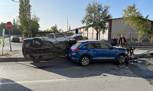 Kayseri'nin Melikgazi ilçesinde meydana gelen kazada çarpışan iki otomobilden biri yan yattı. Güvenlik kamerasına yansıyan kazada 2 kişi yaralandı.