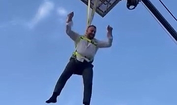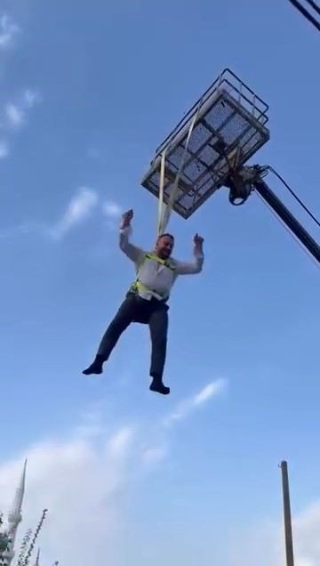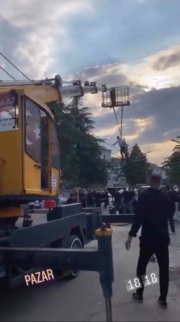 Bursa’nın Yenişehir ilçesinde düğün öncesi yapılan geleneksel “damat işkencesi” bu kez bambaşka bir boyuta taşındı. Damat adayı Berhan Uysal, arkadaşları tarafından vinç yardımıyla havaya kaldırıldı.