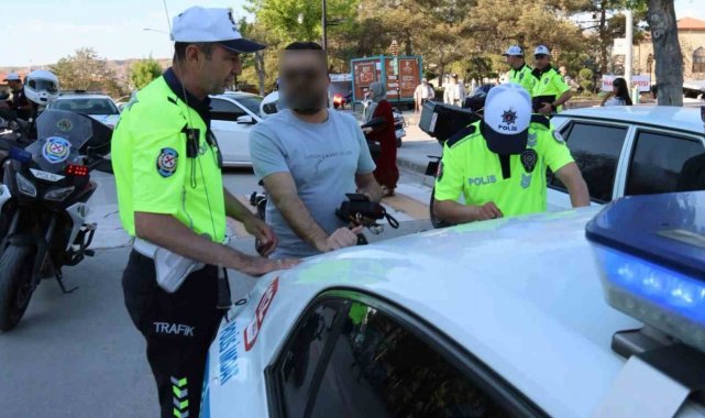 Aksaray'da havaların ısınmasıyla birlikte trafikte sayıları hıza artan motosikletlere karşı etkin bir çalışma başlatan İl Emniyet Müdürlüğü Trafik Tescil ve Denetleme Şubesi ekipleri usulsüz hiçbir motosiklet ve sürücüsüne geçit vermiyor. Bu çerçevede yapılan denetimlerde şehir merkezinde kasksız motosiklet kullanan sürücüyü durduran trafik ekipleri yaptığı incelemede sürücü H.G.'nin ehliyetsiz, 68 ABR 111 plakalı motosikletin ise sigortasız ve yakalaması olduğunu tespit etti. İşlemler için motosikletten indirilen sürücüye ehliyetsiz, kasksız ve sigortasız motosiklet kullanmaktan toplam 20 bin 663 lira para cezası kesildi. Plakadan yapılan sorgulamada motosikletin yakalama kararı olduğu da belirlenirken, motosiklet trafikten men edilerek otoparka çektirildi.