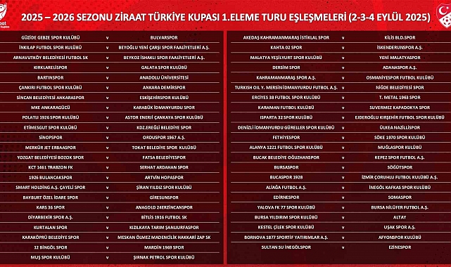 Ziraat Türkiye Kupası 1. eleme turunda Erciyes 38 Futbol Kulübü'nün rakibi Türk Metal 1963 SK oldu. Ziraat Türkiye Kupası 1. Eleme Turu Kura Çekimi, dün TFF Riva Hasan Doğan Milli Takımlar Kamp ve Eğitim Tesisleri'nde yapıldı. Orhan Saka Konferans Salonu'nda gerçekleşen kura çekimine, Erciyes 38 Futbol Kulübü'nden katılan olmadı. Mavi-siyahlılar 1. eleme turunda 3.Lig ekiplerinden Türk Metal 1963 SK ile eşleşti. 1. eleme turu maçları 2-3-4 Eylül 2025 tarihlerinde Kayseri'de oynanacak.