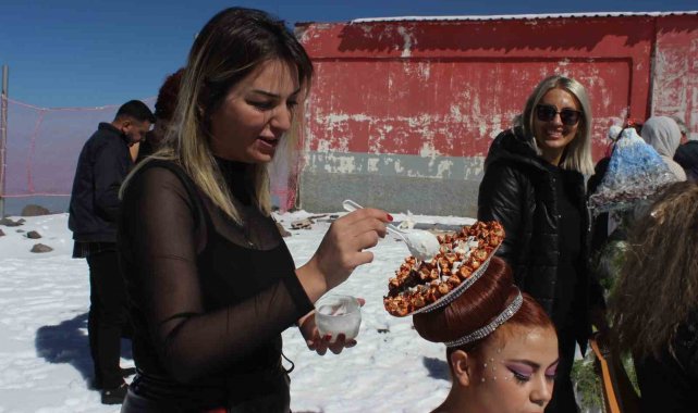 Kayseri'de kuaförler, 3 bin 400 metre yükseklikte Kayseri'yi simgeleyen lezzetleri ve simgeleri saçta buluşturdu. Erciyes Dağı'nda mesleğini icra eden kuaförler birbirinden farklı modellerle sanatlarını konuşturdu.