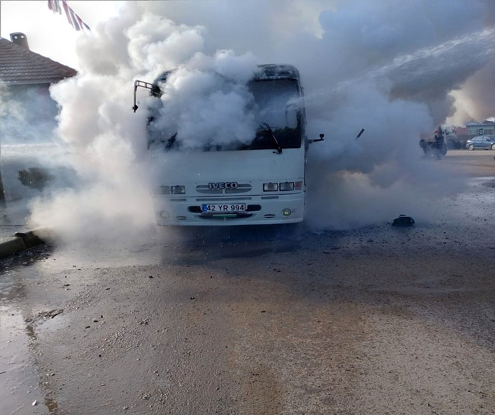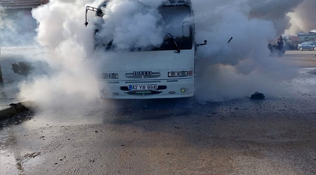Konya'nın Ereğli ilçesinde seyir halindeki bir minibüste çıkan yangın itfaiye ekiplerince söndürüldü.