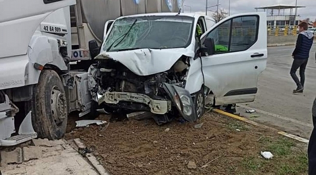 Konya'nın Ereğli ilçesinde süt tankeriyle kamyonetin çarpışması sonucu meydana gelen trafik kazasında 1 kişi ağır yaralandı.