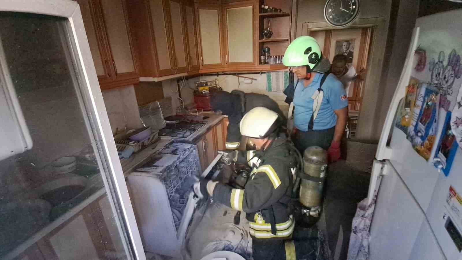 Karaman'da bulaşık makinesinden çıkan yangında yaşlı kadın, yoğun dumana rağmen eve girerek muhabbet kuşunu yangından kurtardı.