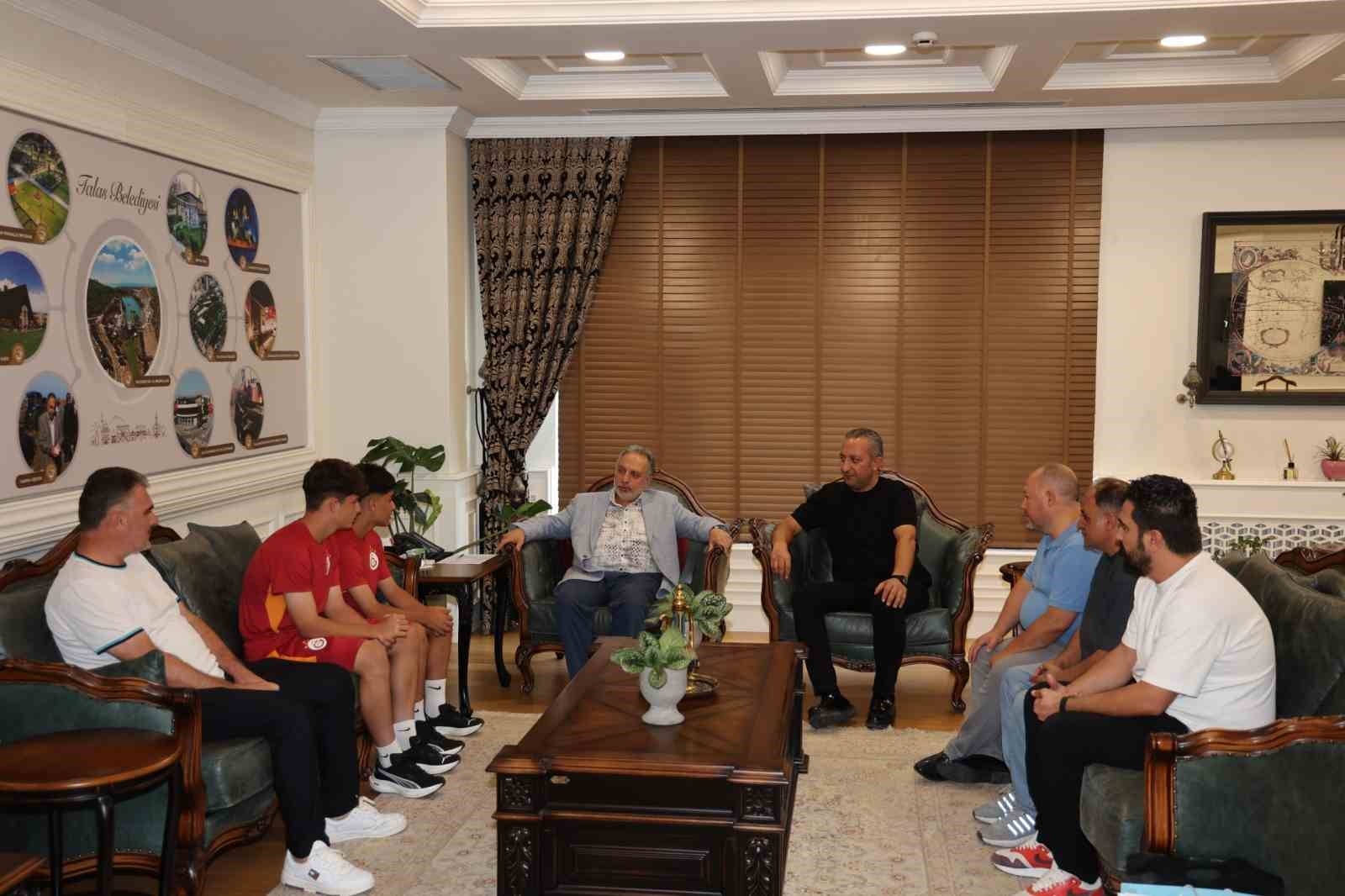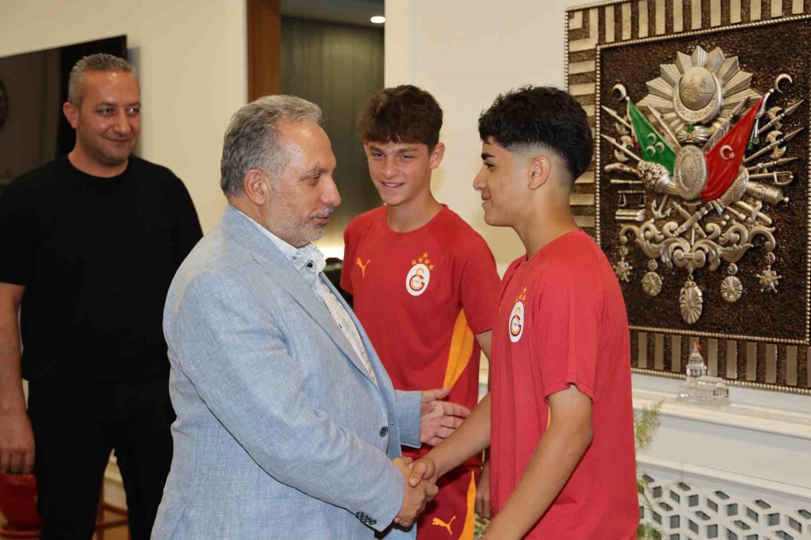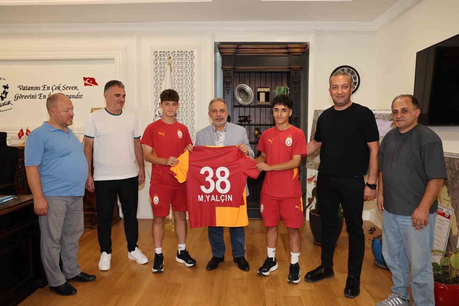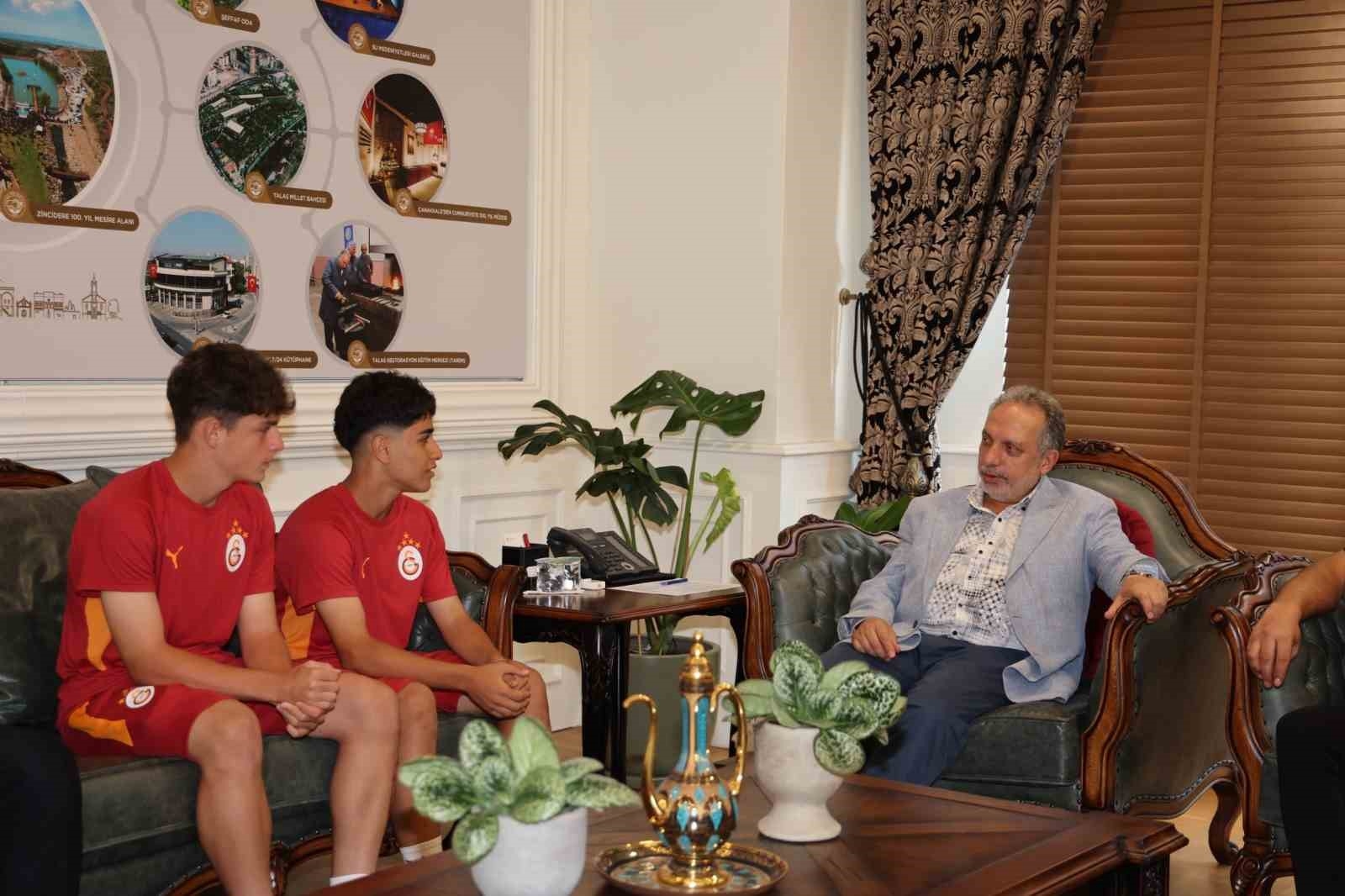 Talas Belediyespor altyapısından yetişerek Galatasaray'a transfer olan genç futbolcular Muhammet Mustafa Cingöz ve Mehmet Emin Dabaz, aileleriyle birlikte Talas Belediye Başkanı ve Talas Belediyespor Onursal Başkanı Mustafa Yalçın'ı makamında ziyaret etti.