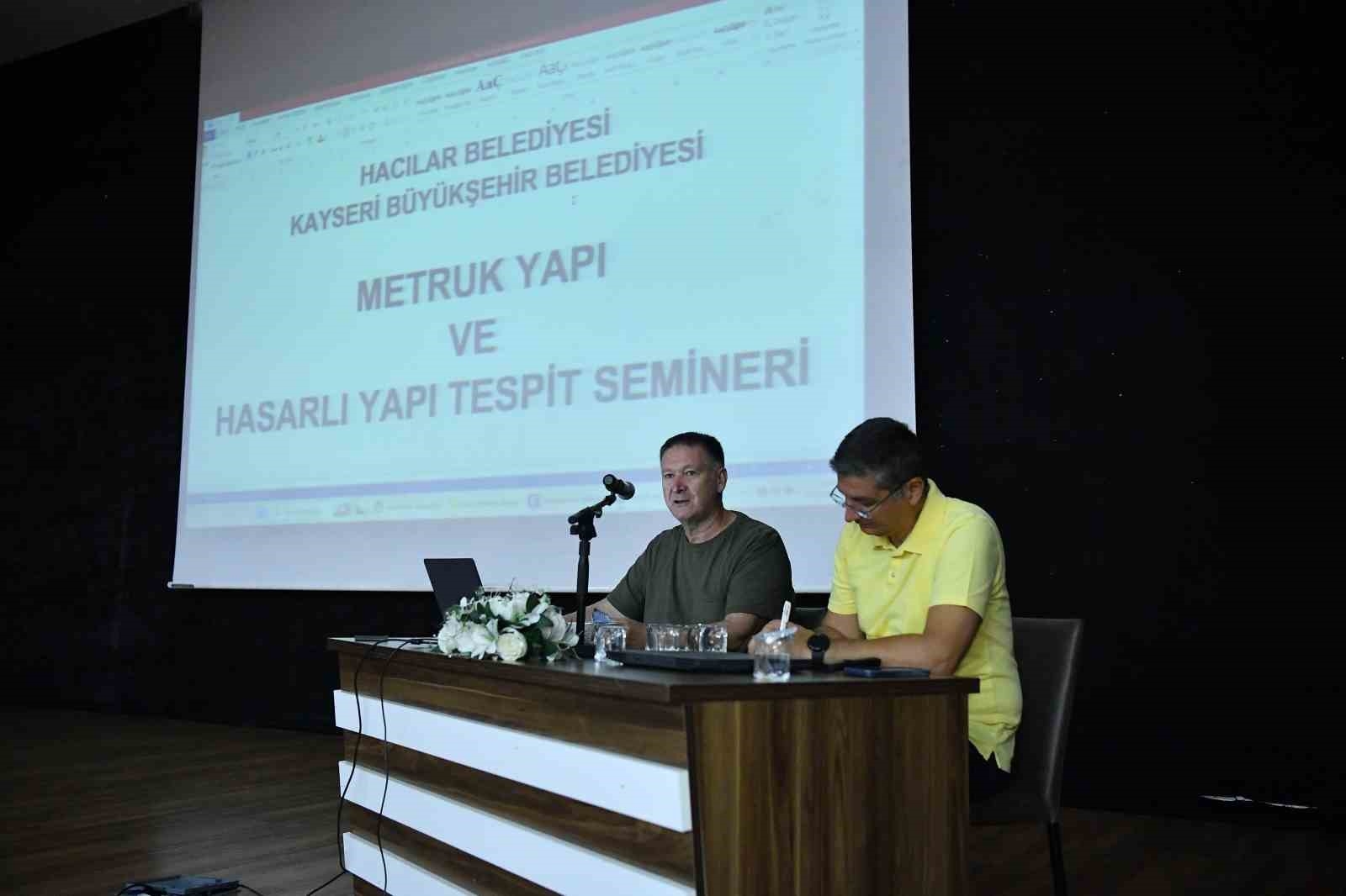 Kayseri Büyükşehir Belediyesi; Hacılar Belediyesi iş birliğiyle düzenlediği 'Metruk Yapı ve Hasarlı Yapı Tespit Semineri' ile kentsel riskleri azaltma ve depreme dayanıklı şehir hedefi doğrultusunda önemli bir adım daha attı.