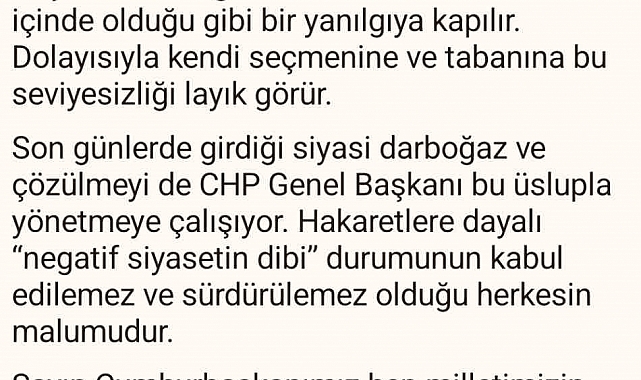 Cumhurbaşkanlığı İletişim Başkanı Burhanettin Duran," Son günlerde girdiği siyasi darboğaz ve çözülmeyi de CHP Genel Başkanı bu üslupla yönetmeye çalışıyor.