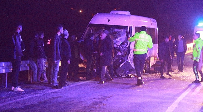 Mersin'in Mut ilçesinde, işçileri taşıyan otobüs ile otomobilin çarpıştığı kazada 1 kişi hayatını kaybetti, 11 kişi yaralandı.