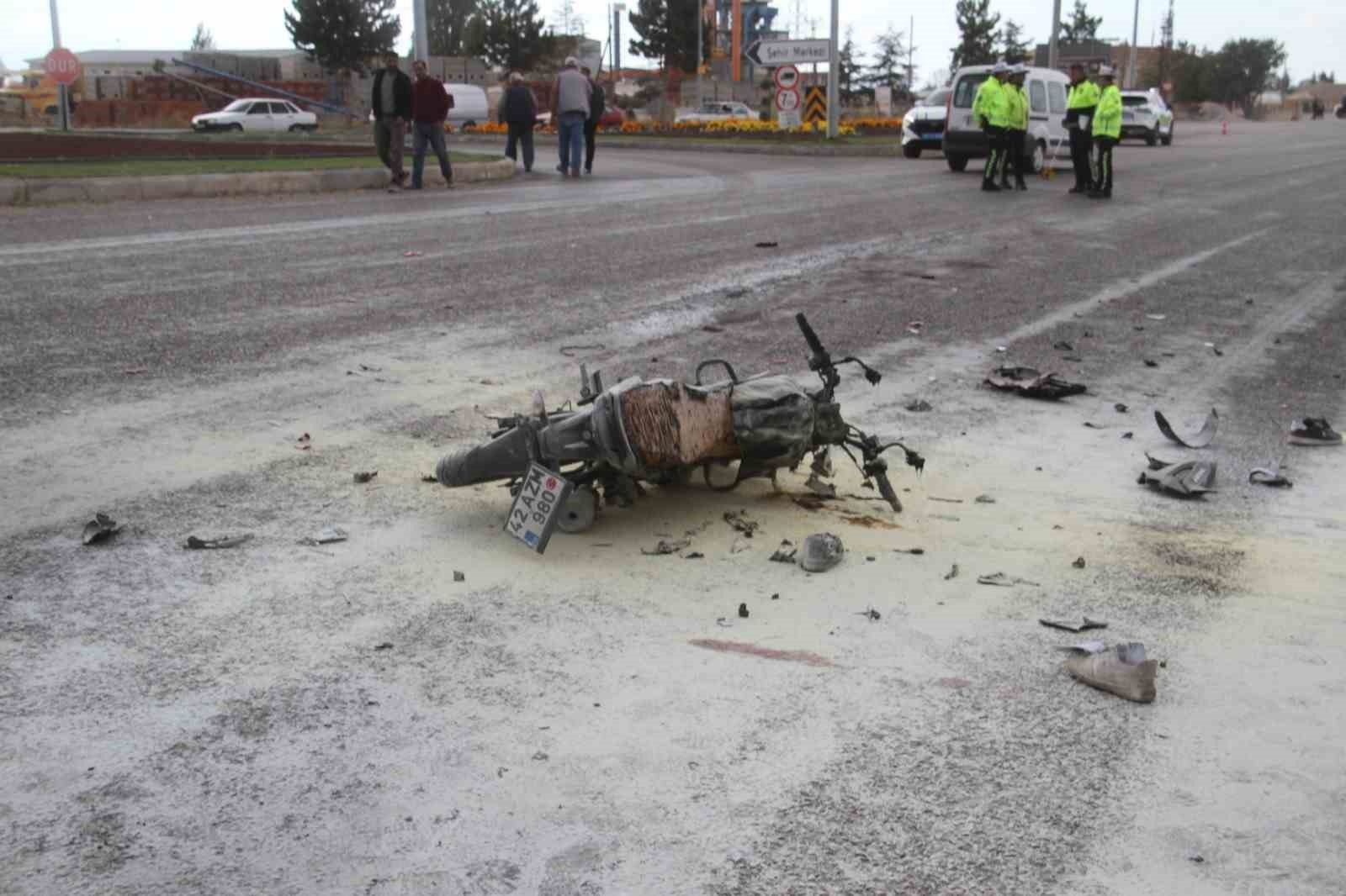 Konya'nın Beyşehir ilçesinde işçi servisi ile çarpışarak alev alan motosikletteki 2 kişi yaralandı. Kaza, Beyşehir Isparta Kara yolu çevre yolundaki kavşakta bir akaryakıt istasyonu yakınlarında meydana geldi. Edinilen bilgiye göre, O.S.'nin (18) idaresindeki 42 AZM 980 plakalı motosiklet, kavşakta karşı yönden gelen F.Ü. idaresindeki 42 B 6090 plakalı işçi servisi ile çarpıştı. Kazada çarpışmanın şiddetiyle devrilerek alev alan motosikletten savrulan sürücü ile arka koltukta oturan T.S. (22) yaralandı. Motosikletteki yangına akaryakıt istasyonu çalışanları yangın söndürme tüpüyle müdahale etti. Yaralı T.S. ile sürücü adrese sevk edilen ambulanslarla kaldırıldıkları Beyşehir Devlet Hastanesinde tedavi altına alındı. İçerisinde çok sayıda işçinin bulunduğu servis midibüsündekiler ise kazayı yara almadan atlattı. Kaza ile ilgili tahkikat sürüyor.