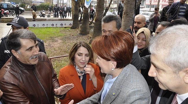 Manavgat'ta ilk olarak parti binasına gelen Akşener, partililer tarafından karşılandı.