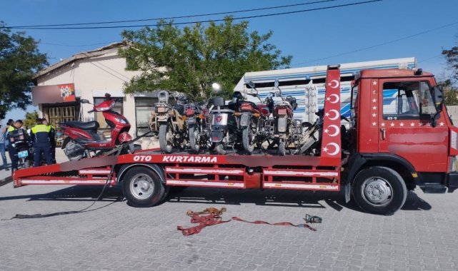 Aksaray'da jandarma ekiplerince motosiklet sürücülerine yönelik yapılan denetimlerde kurallara uymayan 24 sürücüye 220 bin 504 lira para cezası kesilerek tescilsiz ve plakasız 16 motosiklet trafikten men edildi.