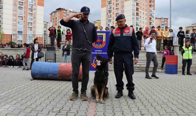 Kayseri İl Jandarma Komutanlığı Çevre, Doğa ve Hayvanları Koruma Tim Komutanlığı tarafından 04 Ekim Hayvanları Koruma Günü çerçevesinde, Talas ilçesinde bulunan TOKİ Şehit Levent Çetinkaya İlköğretim okulunda öğrenim gören bin 27 öğrenciye zor durumda kalan hayvanların korunması, hayvanların bakımı ve beslenmesine yardımcı olunması, hayvanlara eziyet edenlere karşı duyarlı olunması, hayvan sevgisi ve hayvan hakları konusunda eğitim verildi. Eğitimde öğrencilere hayvan sevgisini aşılamak maksadıyla Arama Kurtarma Köpekleri Girgin ve Tombik ile gösteriler düzenlendi.