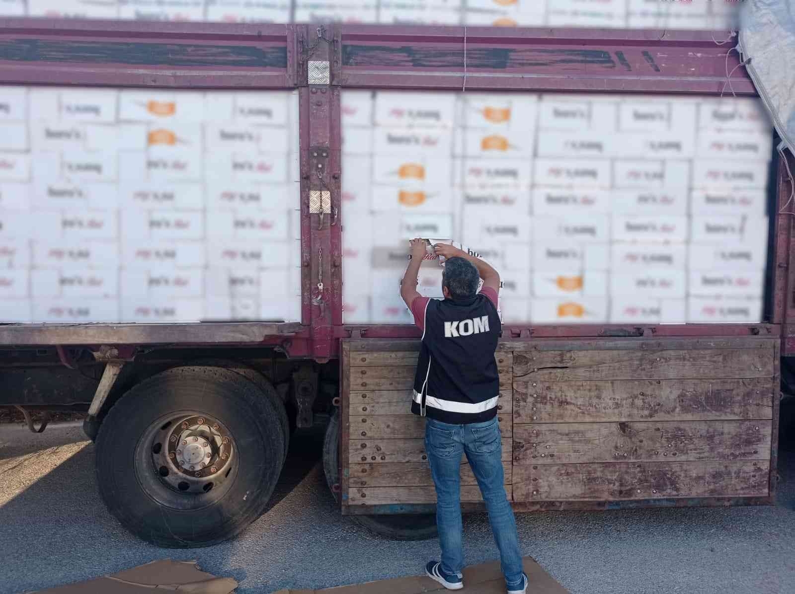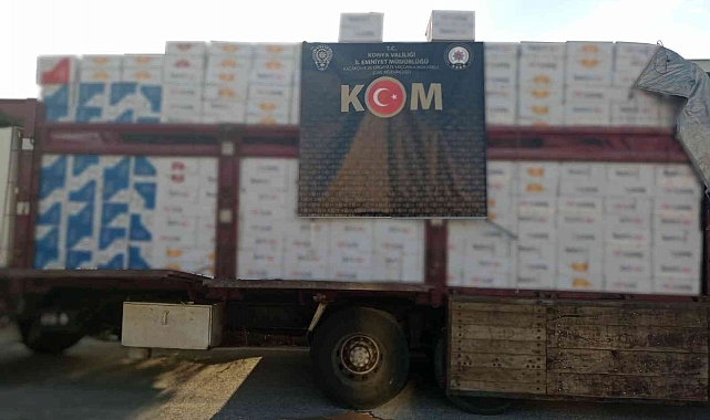 Konya'da KOM ekiplerinin durdurduğu kamyonda milyonlarca makaron ele geçirildi.