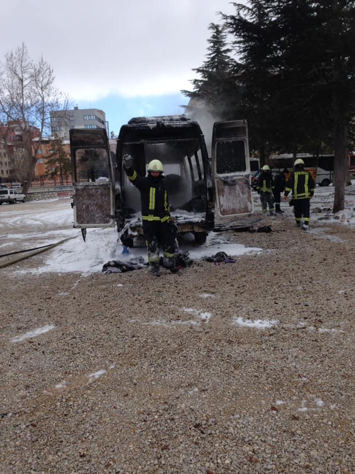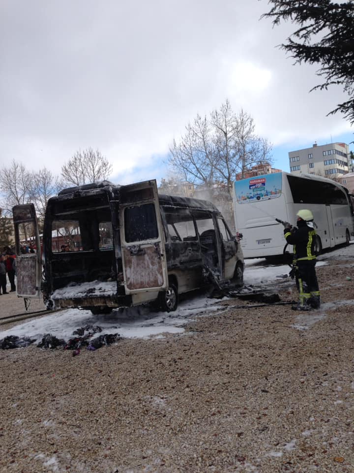 Karaman'da meydana gelen minibüs yangınında Patlayan Piknik Tüpü Minibüsü küle çevirdi.