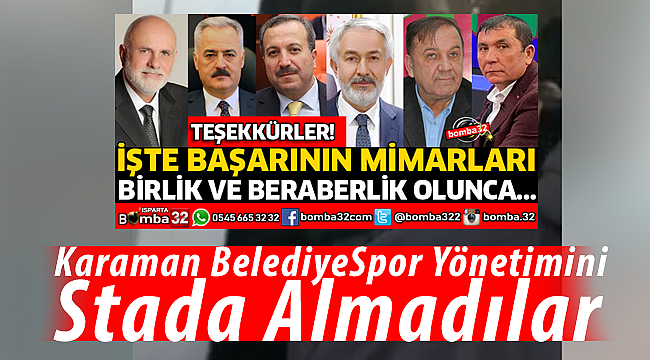 Isparta yerel haber sitesi Bomba32 ise yaptığı haberde Başarının Mimarları olarak gösterdiği ekipte Karaman Belediye Başkanı Savaş Kalaycı'yı stada almayan Isparta Valisi Ömer Seymenoğlu olması dikkat çekici...
