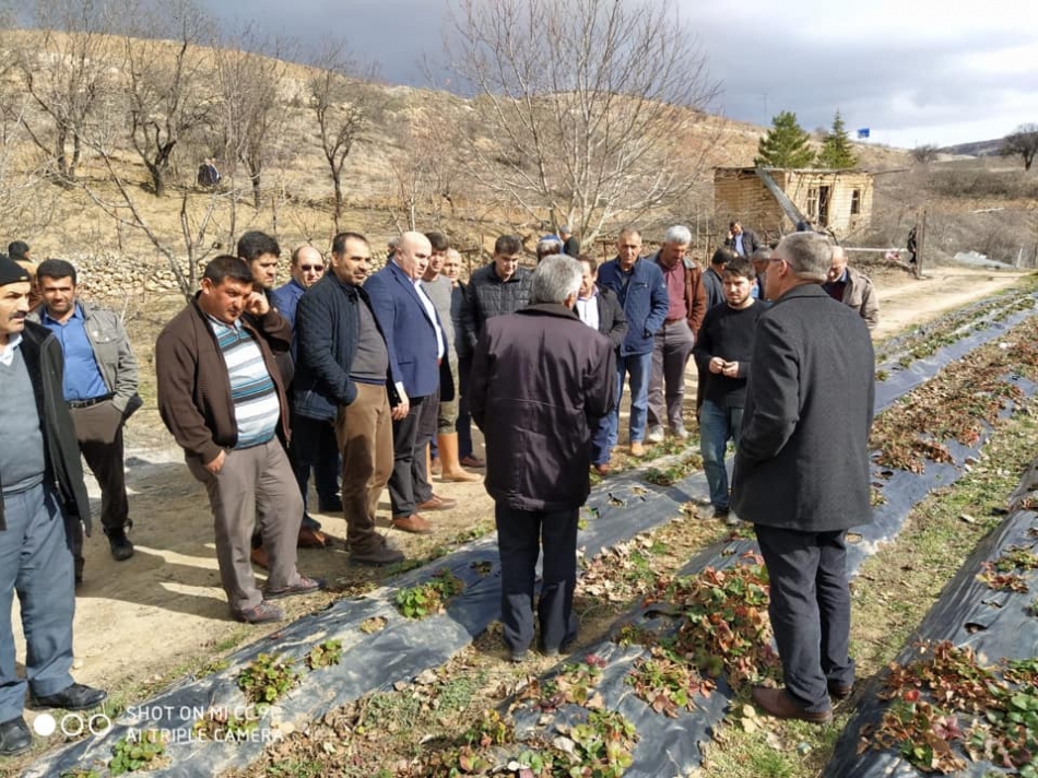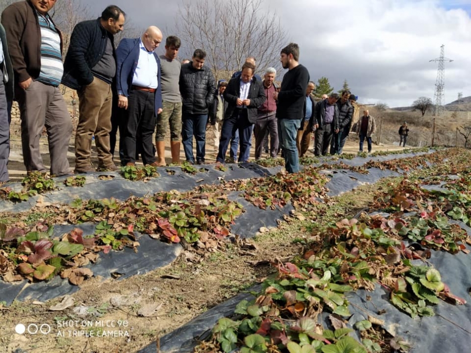Karaman Ziraat odası ve beraberindeki çiftçiler Sarıhacı Mahallesinde yaklaşık 4 yıl önce başlanan ve önemli çilek üretimi merkezlerinden biri olan açık ve seralarda çilek tarlalarında incelemelerde bulundu.