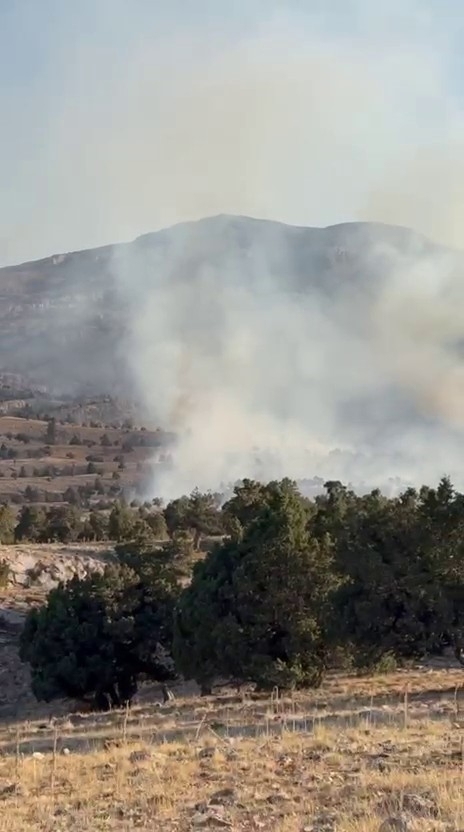 Karaman'ın Ayrancı ilçesinde dağlık alanda çıkan örtü yangını ağaçlık alana sıçradı. Ekiplerin yangını söndürme çalışmaları sürüyor.