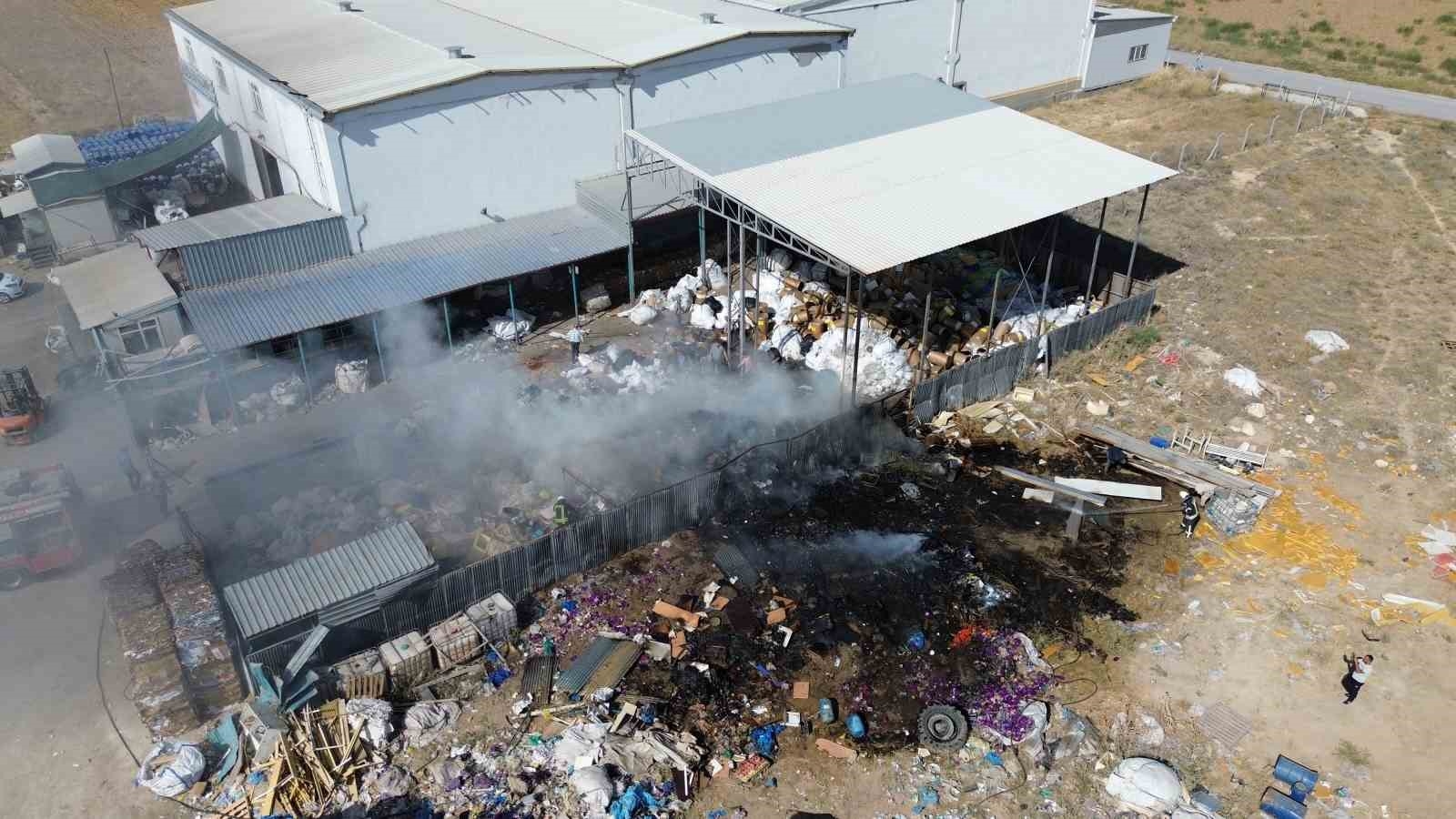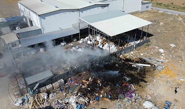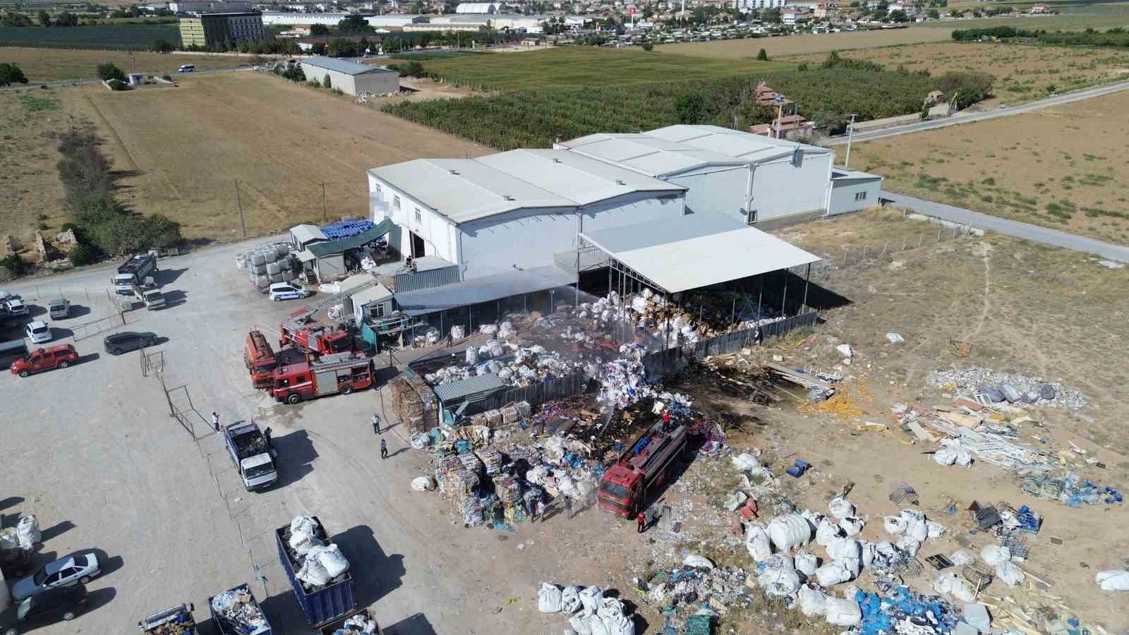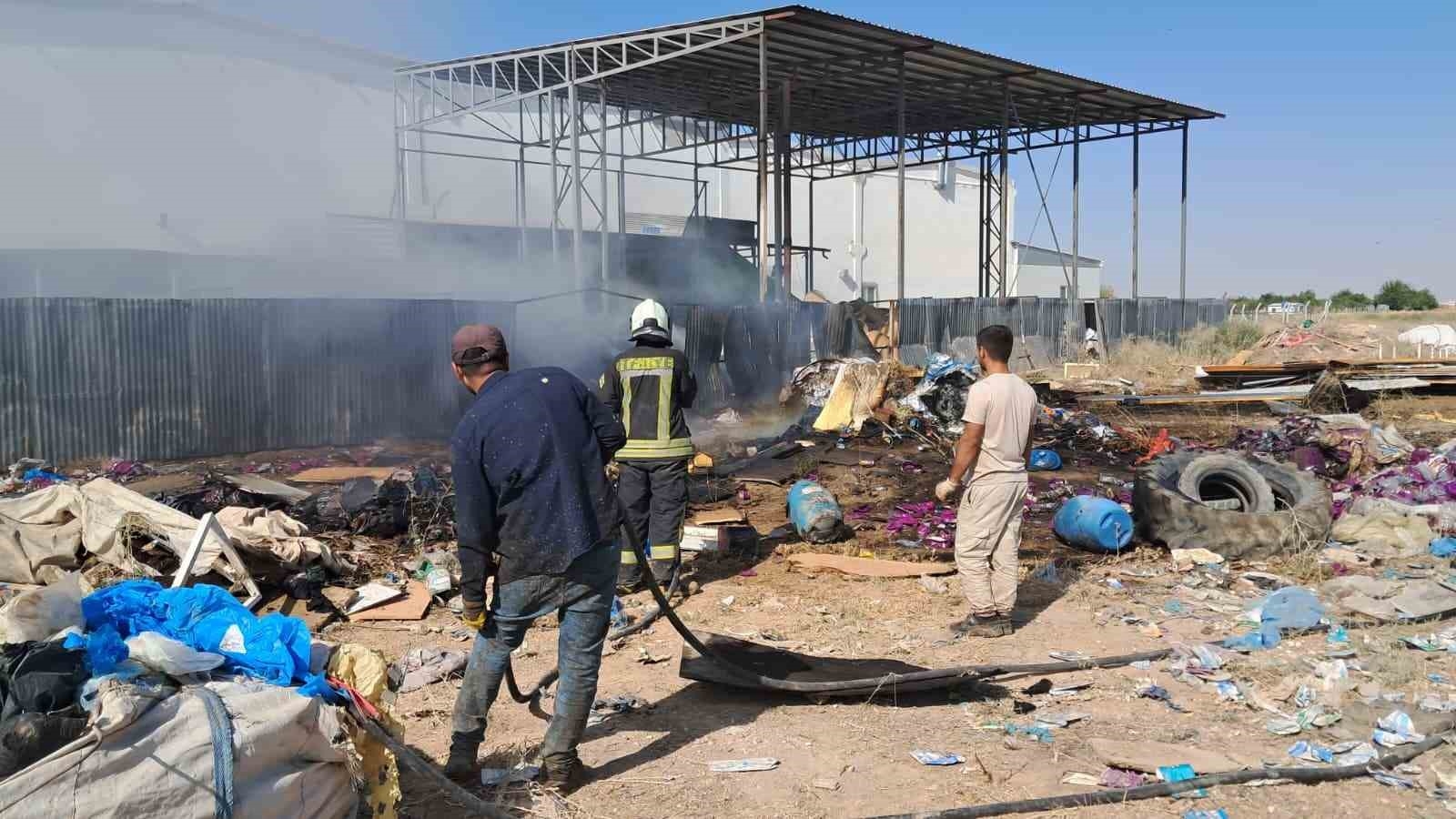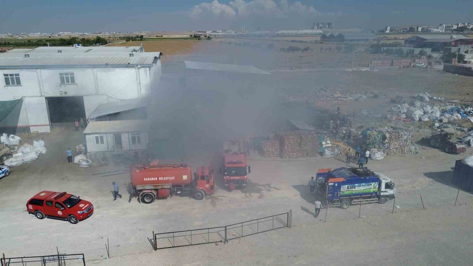 Karaman'da geri dönüşüm tesisinin bahçesindeki atıkların tutuşması sonucu çıkan yangın binalara sıçramadan söndürüldü.