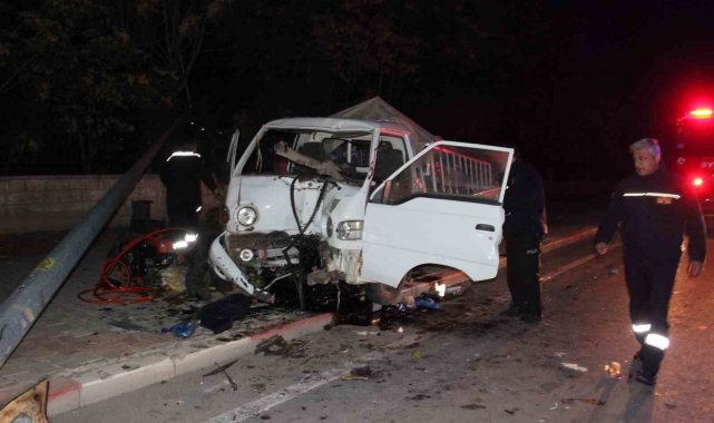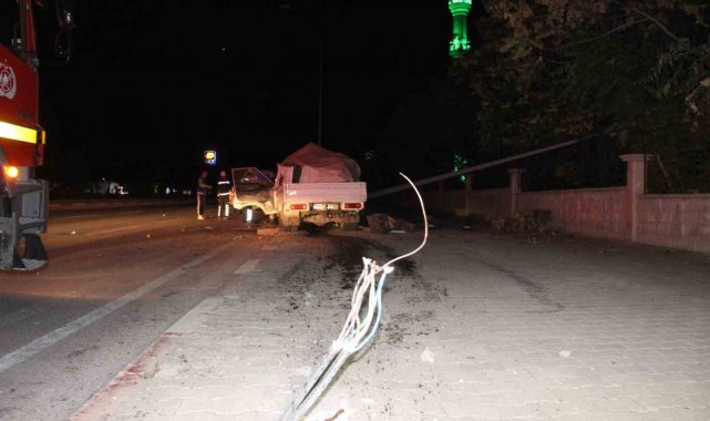 Karaman'da aydınlatma direğine çarpan kamyonetin sürücüsü direksiyon mahallinde sıkıştı. Yaralı sürücü, itfaiyenin yarım saatlik çalışması sonucu sıkıştığı yerden kurtarılarak hastaneye kaldırıldı.