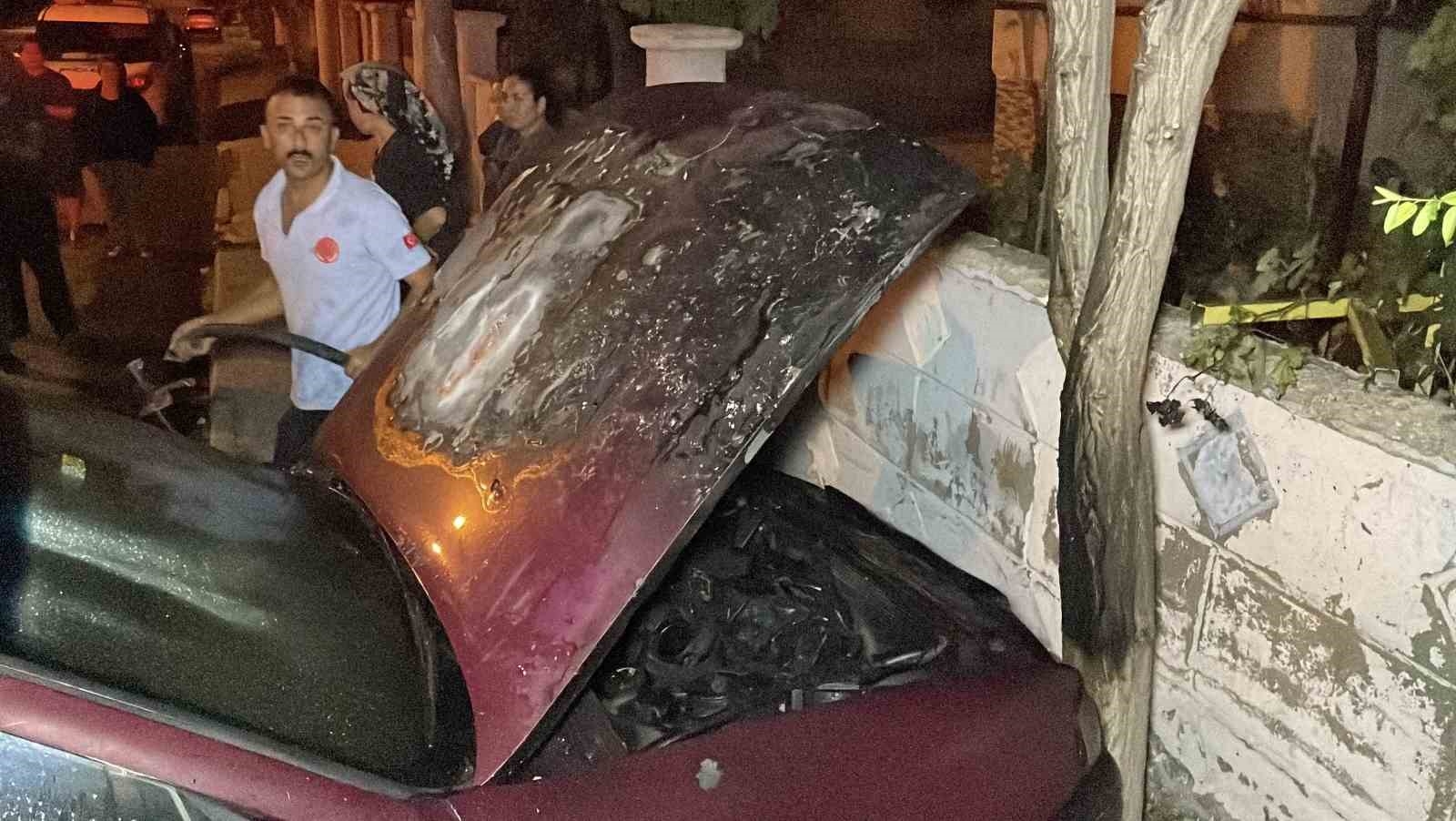 Karaman'da park halindeki bir otomobil kendiliğinden hareket ederek kaldırıma çıktı.