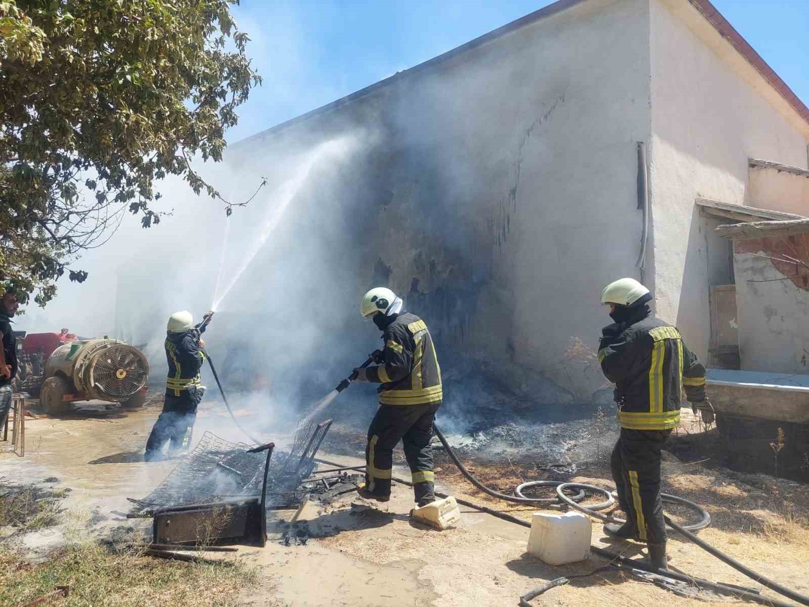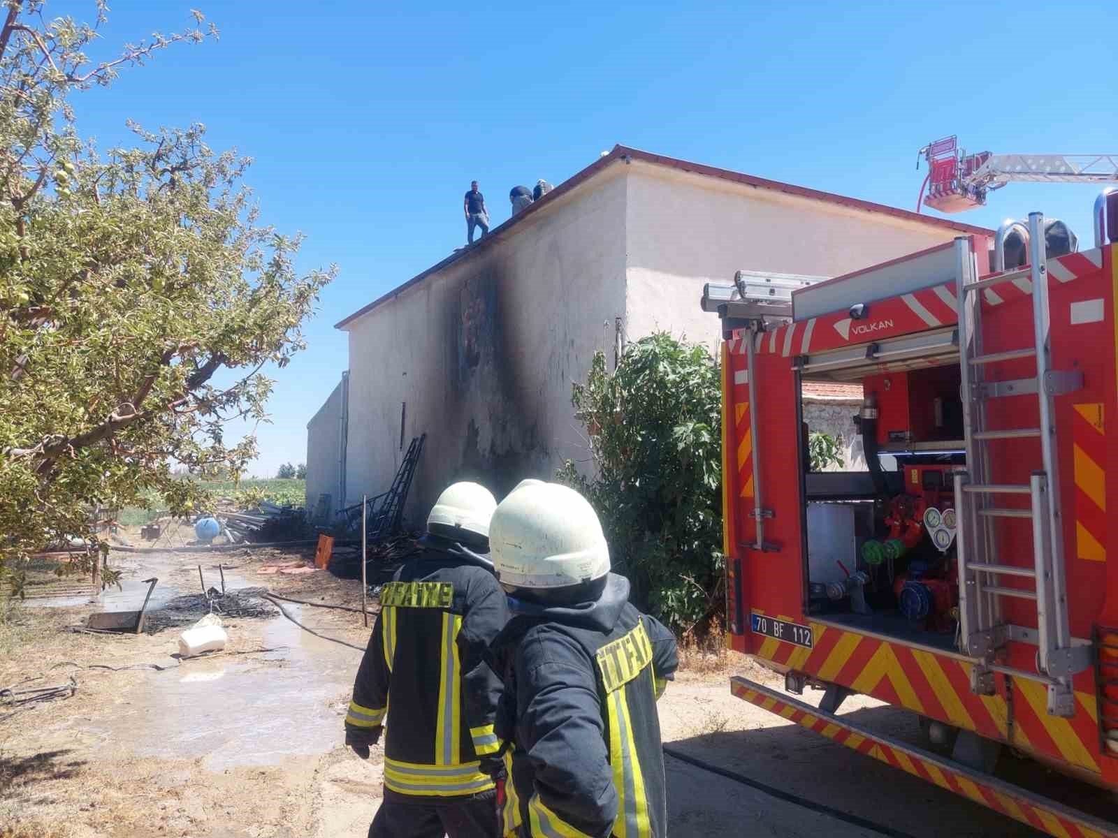 Karaman'da tahtaların tutuşması sonucu çıkan yangında alevler çatıya sıçradı