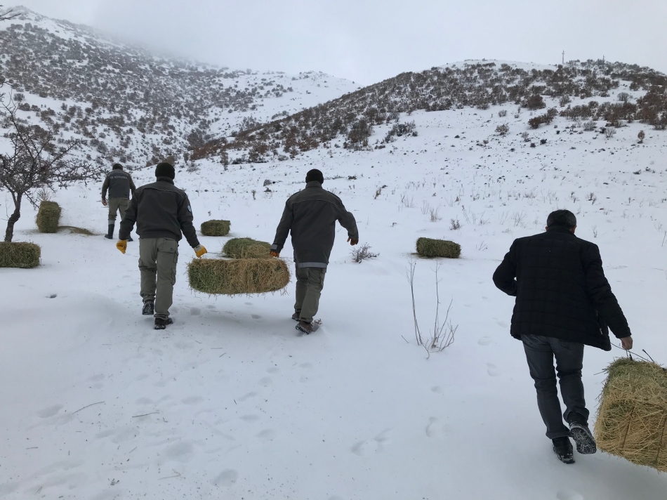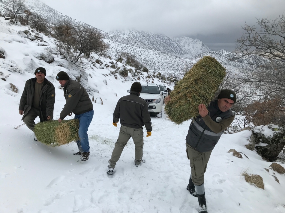 Karaman Doğa Koruma ve Milli Parklar Ekibi Yaban hayvanlarının doğal yaşam ortamlarında varlıklarının devam etmesi alan, besin, su ve örtü gibi bileşenlerin yeterli kalite ve miktarda uygun dağılımda bulunmasına bağlıdır. Olumsuz hava şartlarının oluştuğu kış aylarında yaban hayvanlarının yaşam alanlarının karla kaplı olması sonucu besin miktarı ve kalitesinin düşmesine neden olmaktadır. Özellikle Anadolu Yaban Koyunu ve Yaban Keçileri gibi memeli türlerinin besin ihtiyacını yeterince karşılayamadığı, diğer yaban hayvanlarının ise besin ihtiyacını karşılamak için yollara ve köylere inerek yiyecek aradığı görülmektedir. Özellikle kuşların anayollara girmesi sonucu hem kuşların telef olmasına neden olmakta hem de trafik kazalarına zemin hazırlamaktadır. Bu durum yaban hayvanlarının kendi habitatında besin takviyesi yapılması zorunluluğunu ortaya çıkarmaktadır.