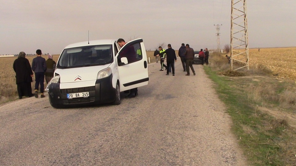 Edinilen bilgiye göre, Mevlüt K. Yönetimindeki 70 EC 574 plakalı otomobil seyir halinde iken karşı yönden gelen Rıza Y. yönetimindeki 70 BA 245 plakalı Hafif ticari araç ile kafa kafaya çarpıştılar. Çarpışmanın etkisiyle otomobil sürücüsü Rıza Y. hafif şekilde yaralandı.