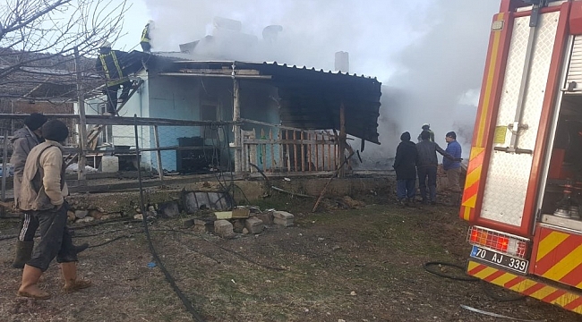 Karaman'da tek katlı bir evde çıkan yangın itfaiye tarafından söndürülürken, evde büyük çapta hasar oluştu.