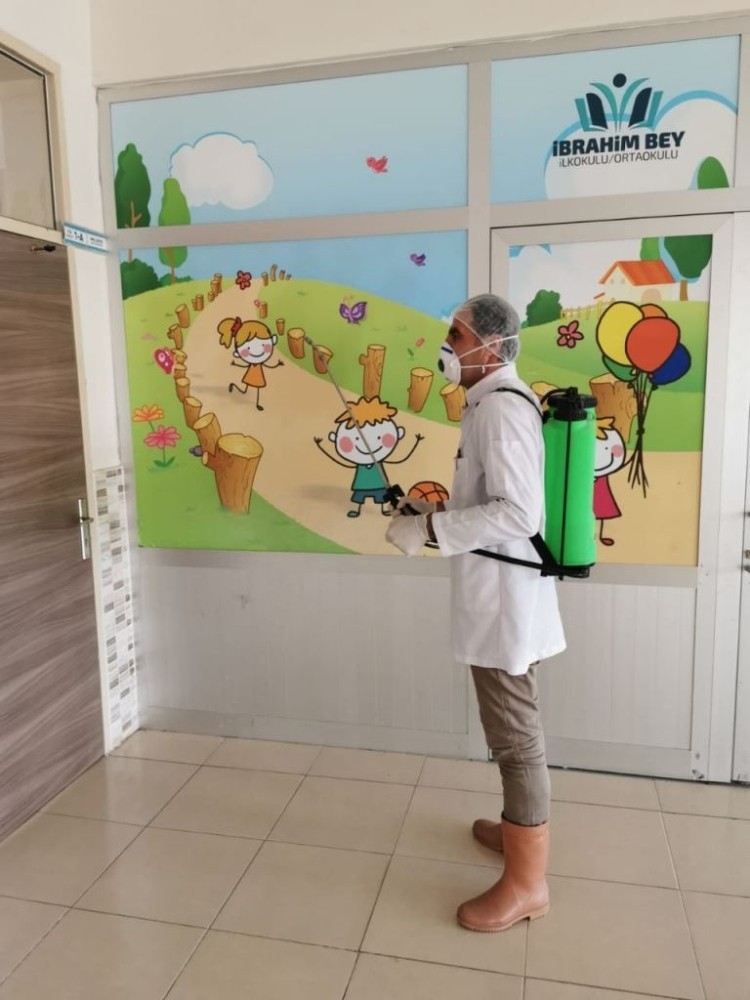 Karaman'da koronavirüsüne karşı önlemler kapsamında tüm okullarda dezenfeksiyon çalışmaları başlatıldı.