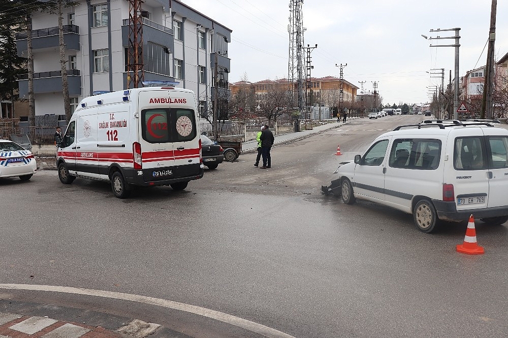 Kaza, Yunuskent Mahallesi Alparslan Türkeş Bulvarı üzerinde bulunan kavşakta meydana geldi. Alınan bilgiye göre, S.U. idaresindeki 70 FL 381 plakalı otomobil ile M.B. yönetimindeki 70 EH 769 plakalı hafif ticari araç kavşakta çarpıştı. Çarpışmanın etkisiyle 70 FL 381 plakalı otomobil, kaldırıma çıktıktan sonra elektrik direğine çarparak durabildi. Çevredeki vatandaşların haber vermesiyle olay yerine sağlık ve polis ekipleri sevk edildi. Kazada hafif şekilde yaralanan bayan sürücü S.U., tedbir amaçlı olay yerine gelen ambulansa alınarak ayakta tedavisi yapıldı. Kaza nedeniyle tek şeridi ulaşıma kapanan yol, araçların yoldan kaldırılmasının ardından yeniden trafiğe açıldı.