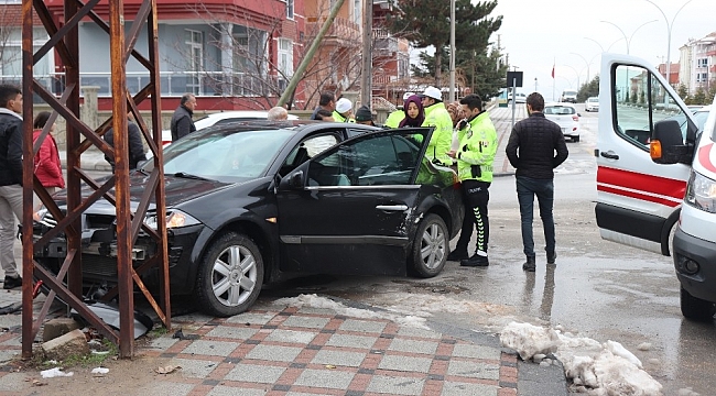 Karaman'da hafif ticari araçla çarpıştıktan sonra kontrolünü kaybeden otomobil, kaldırımdaki demir elektrik direğine çarptı. Kazada otomobilin sürücüsü hafif şekilde yaralandı.