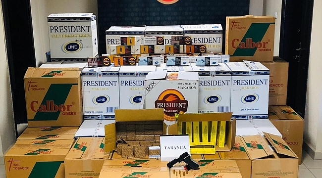 Karaman'da polisin düzenlediği operasyonda 3 bin 15 adet kaçak tütün sarma kağıdı, 390 bin adet boş sigara makaronu ve ruhsatsız tabanca ele geçirildi.