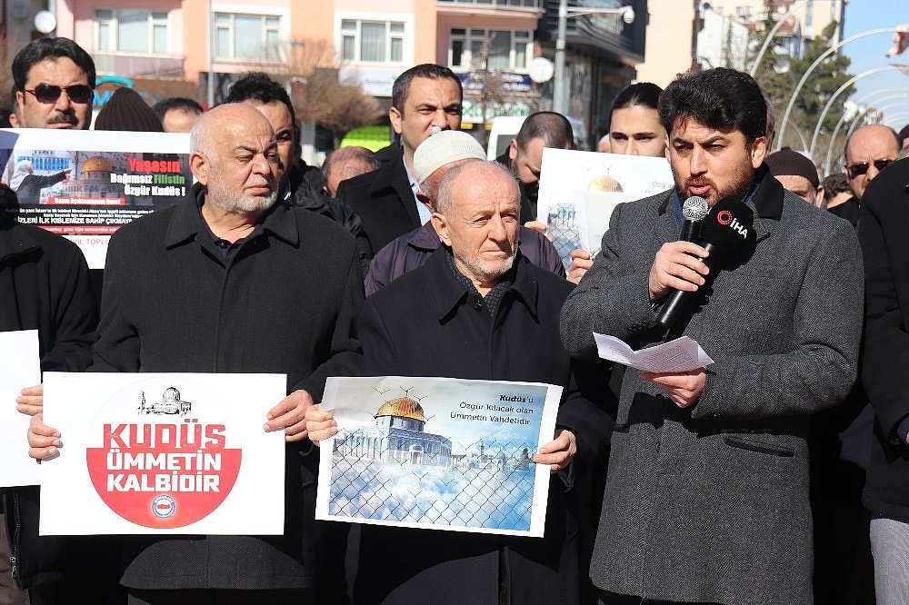 Diğer İslam ülkelerinden de aynı duyarlılığı ve aynı tepkiyi bekliyoruz. Yönetimlerinden bağımsız da olsa bütün Müslümanların vahdeti Kudüs'ün kurtuluşu olacaktır. İşte bu birlik Kudüs'ün de Filistin'in de Doğu Türkistan'ın da Suriye'nin de Gazze'nin de ve esaret altındaki bütün İslam milletlerinin de kurtuluşu olacaktır" dedi.