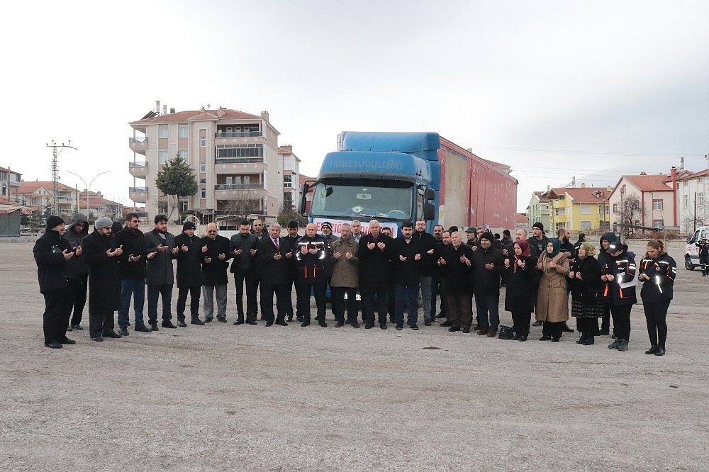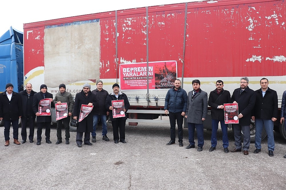 Hazırlanan yardım tırı dualarla birlikte Elazığ'a doğru yola çıktı.