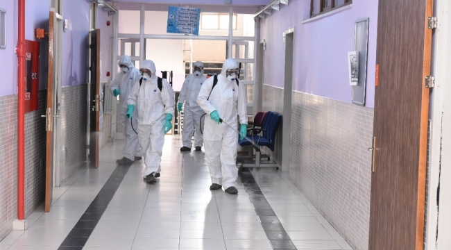 Konya'nın merkez Karatay İlçe Belediyesi, ilçe merkezi ve merkeze uzak mahallelerde bulunan tüm okullarda dezenfekte çalışmalarına başladı.