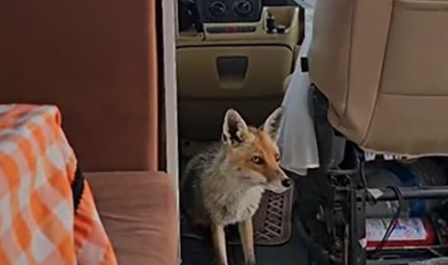 Ankara'da karavanıyla kamp yapan vatandaşın karavanına giren tilkinin görüntüleri renkli anlara sahne oldu.
