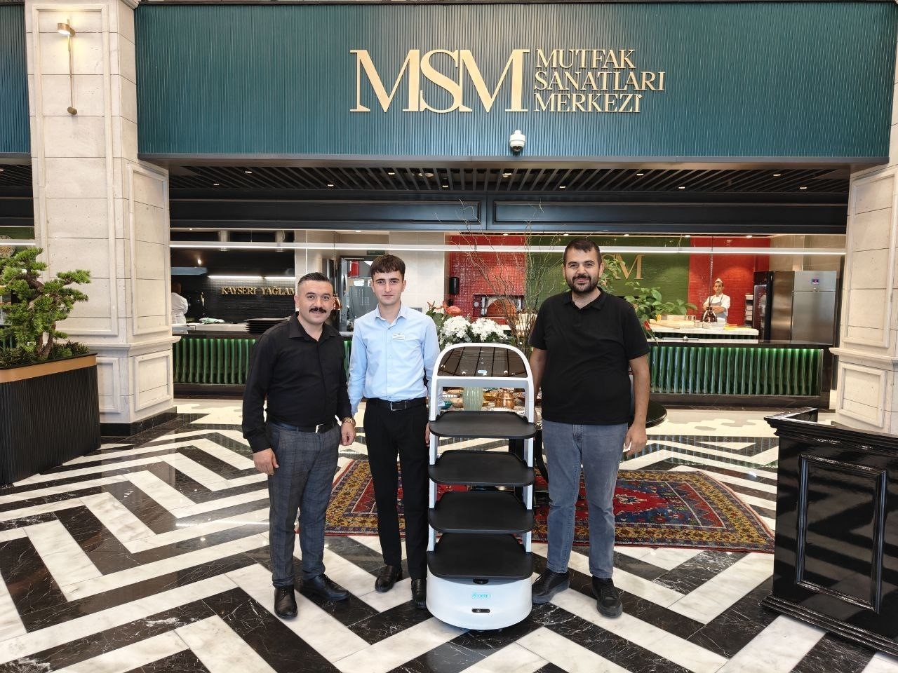 Kayseri Büyükşehir Belediyesi Mutfak Sanatları Merkezi'nde (MSM) hizmete alınan yardımcı robot, Kayseri'nin lezzetlerinin müşterilere sunulmasına ortak oluyor. Kayseri Büyükşehir Belediyesi Mutfak Sanatları Merkezi'nde hizmete alınan komi garson robot MSM, hem müşterilerin ilgisini çekiyor hem de çalışanlara destek oluyor. Üzerinde bulunan tepsilere dizilen ürünleri hafızasındaki kroki sistemi ile nereye götüreceğini bilen MSM, Kayseri'nin lezzetlerinin mutfaktan sofralara gitmesine ortak oluyor. Tesis olarak yeniliklere açık olduklarını söyleyen Kayseri Büyükşehir Belediyesi Mutfak Sanatları Merkezi Yöneticisi İsmail Furkan Olgun, "Biz Mutfak Sanatları Merkezi'ni açarken Kayseri'nin gastronomi şehri olmasına çok önem vererek açtık. Burası yeniliklere açık bir tesis. Sürekli kendimizi yenilememiz gerektiğini biliyorduk. Araştırma yaparken de bu robot önümüze çıktı. Bursa'da üretildiğini ve yerli malı olduğunu gördük. Buraya gelen çocuk misafirlerimiz için, farkındalık oluşturmak için farklı bir proje olacağını da düşündüğümüz için kullanmak istedik ve başladık. Robotun kendisine ait bir harita sistemi var. Krokisini çiziyoruz, şu an Mutfak Sanatları Merkezi'nde hizmet verdiğimiz masaların krokisini hafızasına çizdiriyoruz ve robot o şekilde masalara komi garson olarak garson arkadaşlarımıza yardımcı olacak şekilde servis yapıyor" dedi. Olgun, robotun hafızasındaki kroki sayesinde hangi masaya servis yapacağını bildiğini söyleyerek, "Şu şekilde oluyor; bizim garson arkadaşlarımız oradan ürünler çıktığı ve robotumuza yükledikleri zaman direkt hangi masaya yönlendireceğini üstünden seçtiğimizde nereye tatlı veya yemek vereceğini bildiği için garson arkadaşların yanına kadar götürüp hizmet vermeye başladı. Biz şu an için kendisine geçici olarak MSM adını koyduk ama gelen misafirlerimize anket sunacağız. İsminde de ortak bir karar vereceğiz. Müşterilerimiz çok memnunlar. Özellikle çocuk misafirlerimiz çok memnun. Çünkü robotumuzun birkaç tane özelliği var. Bunlardan birisi de doğum günü kutlama özelliği. İsme özel şarkılar çalarak kutlamalar da yapabiliyor. Çocukların çok dikkatini çekiyor, özellikle geldikleri zaman MSM ile servis yapılmasını istiyorlar. Günümüzde teknolojinin bütün fırsatlarından faydalanmamız gerektiğini düşünüyorum. Bu robotun da bize faydası hem misafirlerin geri dönüşlerinin güzel olması hem de garson arkadaşları rahatlatıcı bir çalışma düzeni var. Yeniliklere açık olunması her zaman güzel oluyor" ifadelerini kullandı.