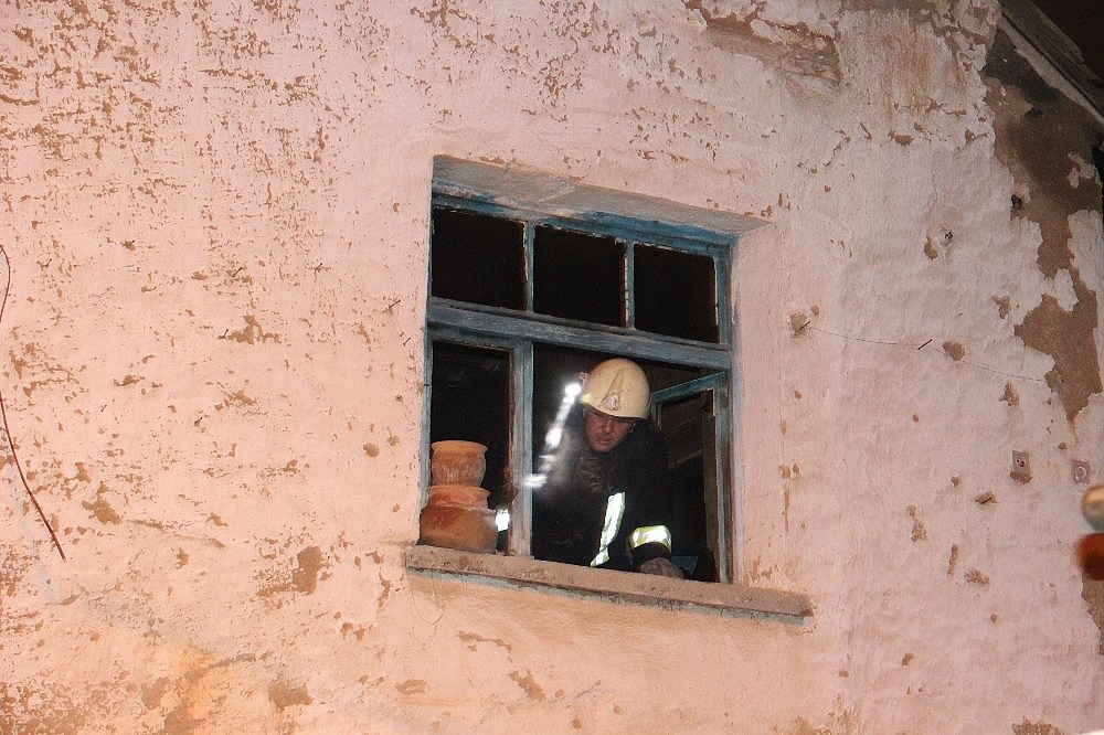 Yangın, akşam saat 20.45 sıralarında Abbas Mahallesi 350. Sokak'ta bulunan iki katlı kerpiç evde meydana geldi.